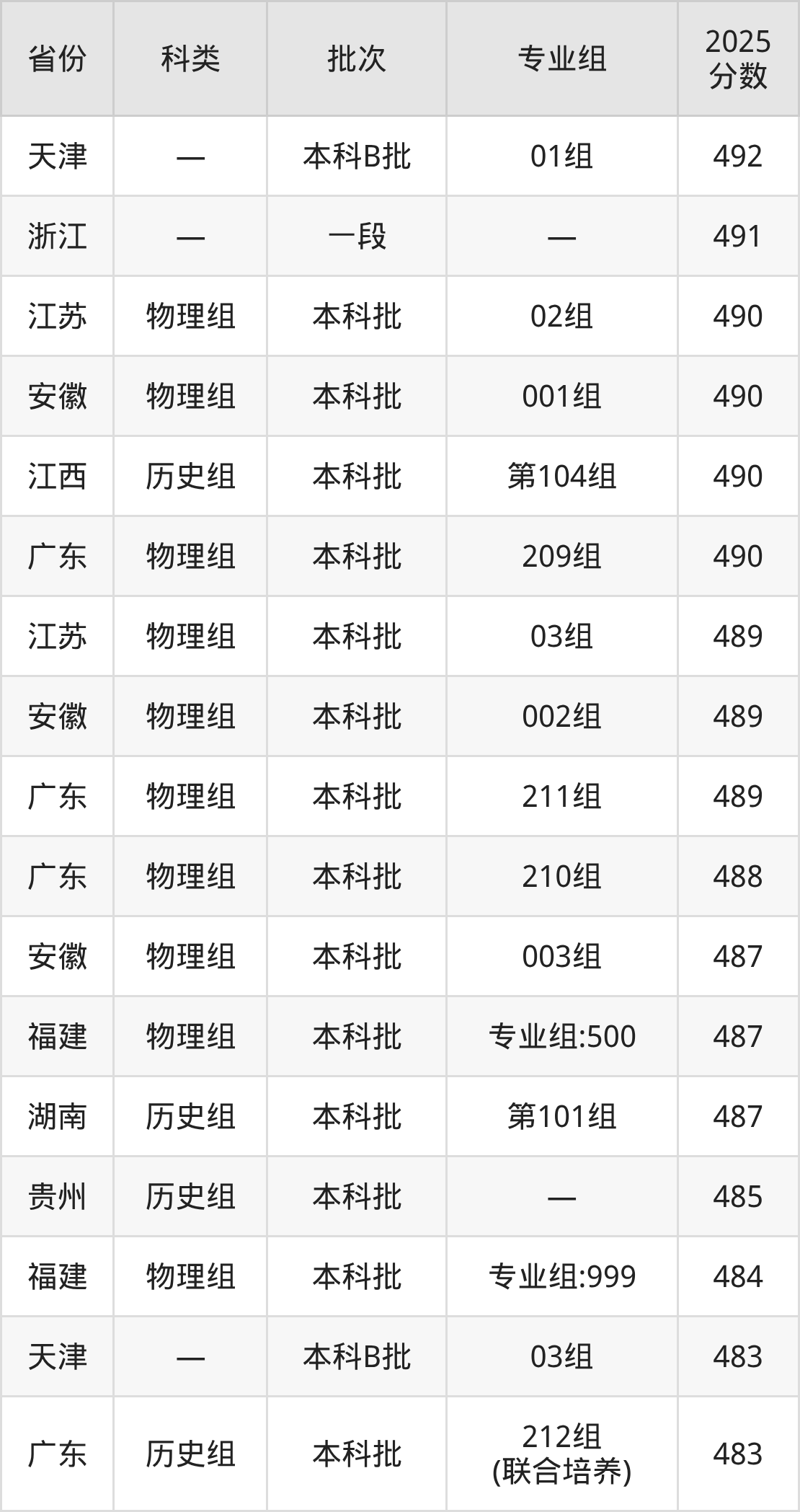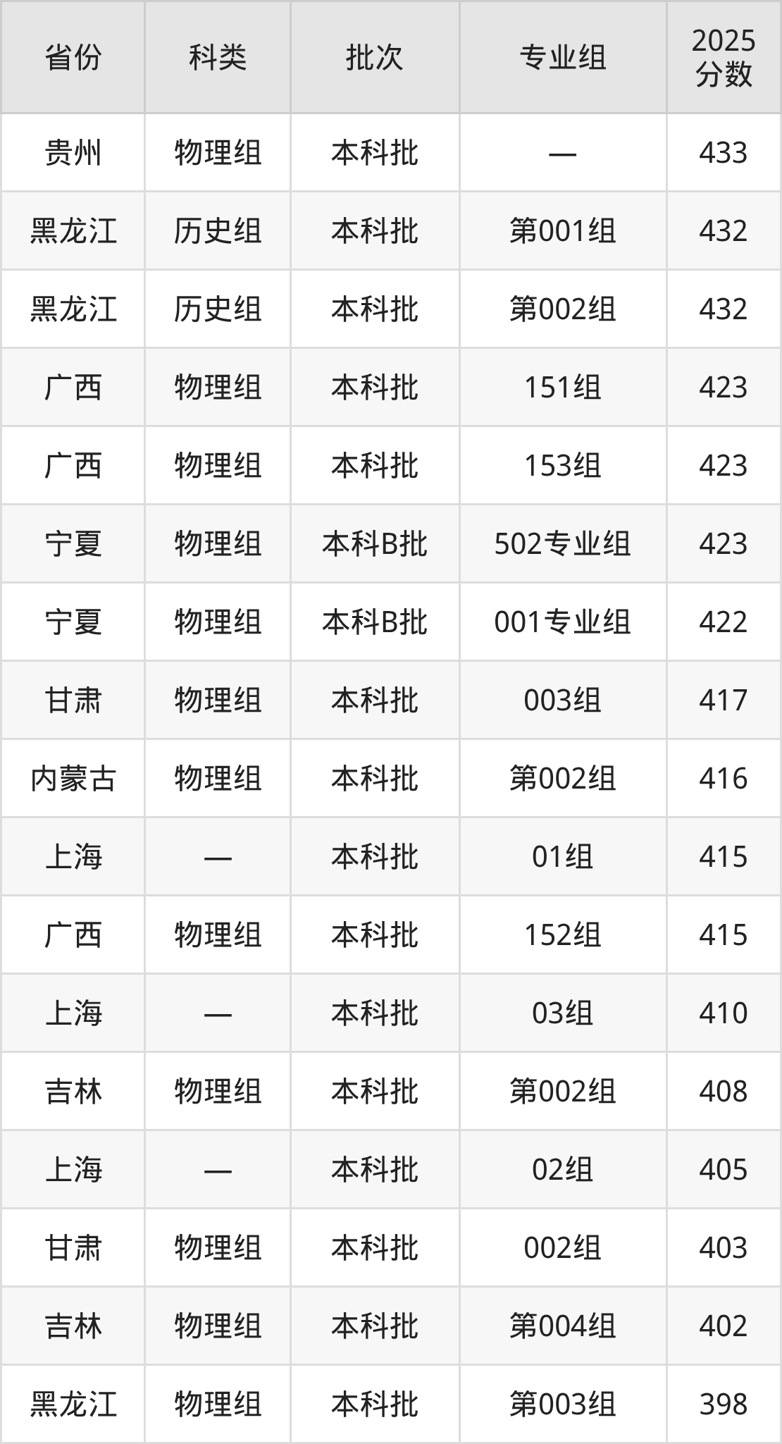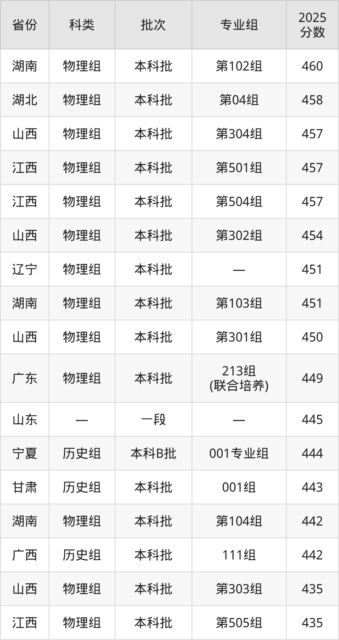 2025年江西财经大学现代经济管理学院在全国普通批次招生的录取分数范围位于389~552分之间,其中省内分数范围为435分~515分,历史组最低分专业组为“第104组”,考生490分即可报考,物理组最低分专业组为“第505组”,考生435分即可报考。