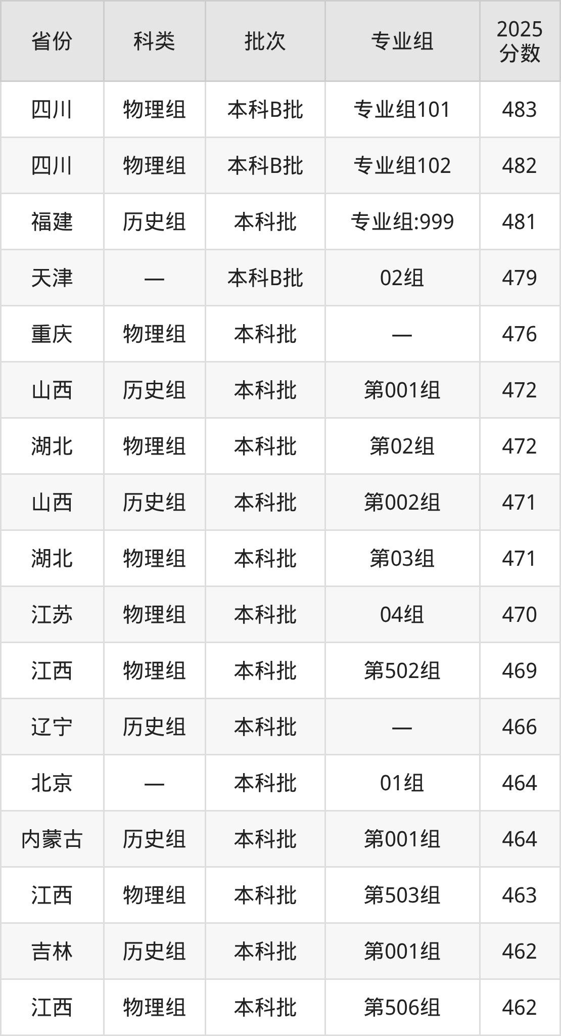 下面是江西财经大学现代经济管理学院2025年在全国各省的录取分数线一览表,供参考: