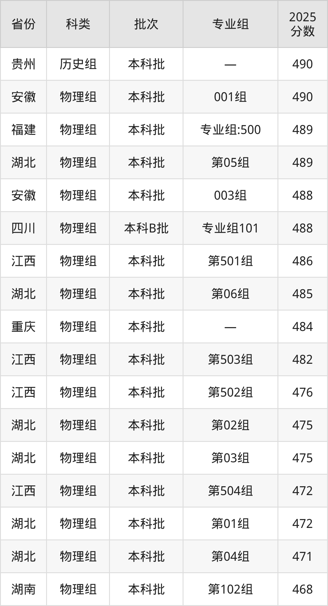 下面是茅台学院2025年在全国各省的录取分数线一览表,供参考: