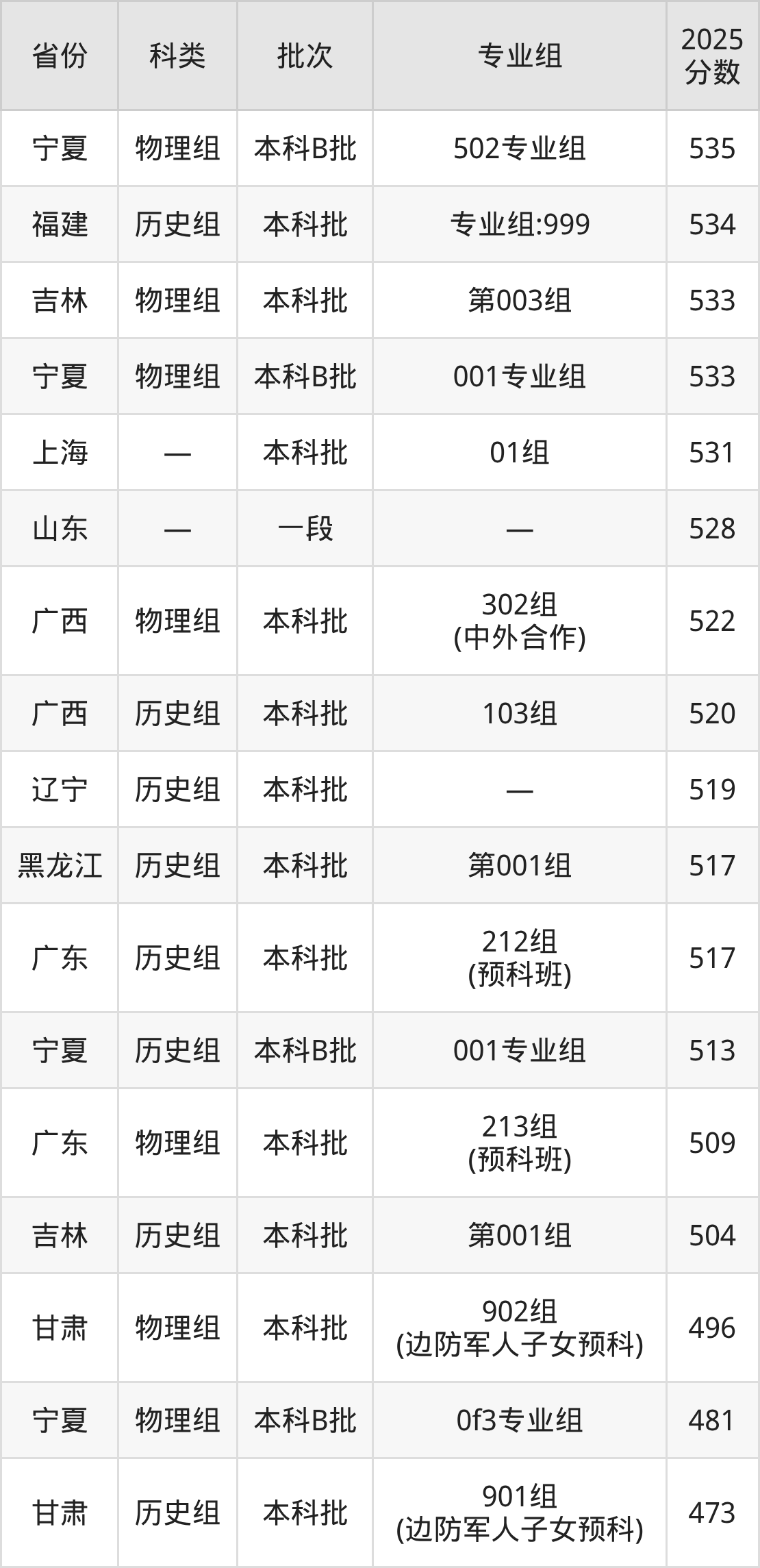 下面是西安邮电大学2025年在全国各省的录取分数线一览表,供参考: