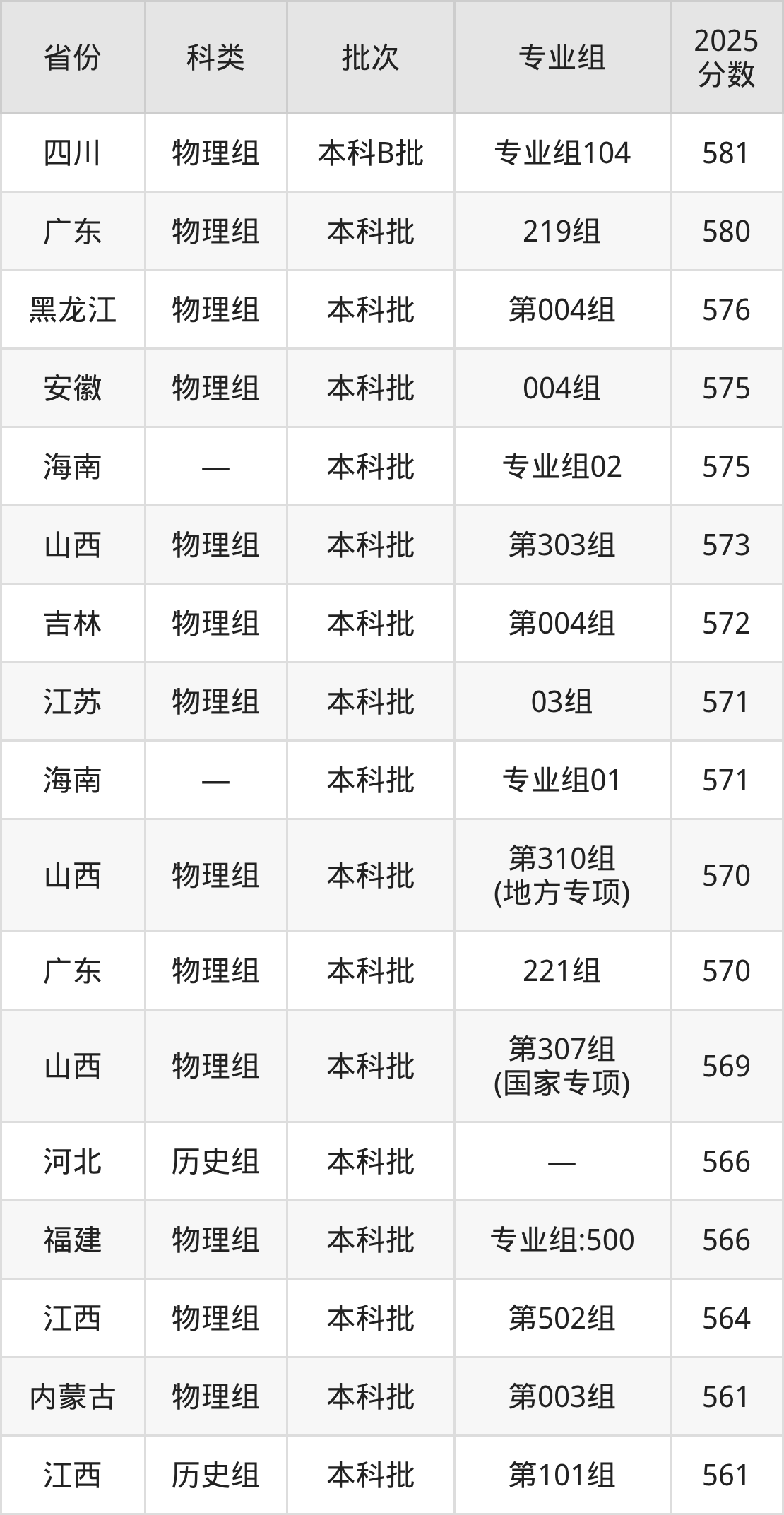 中北大学2026年录取分数需在高招结束官方数据公布后更新,2026届有意向报考该校的同学,可以在填报志愿时参考中北大学2025年录取分数线: