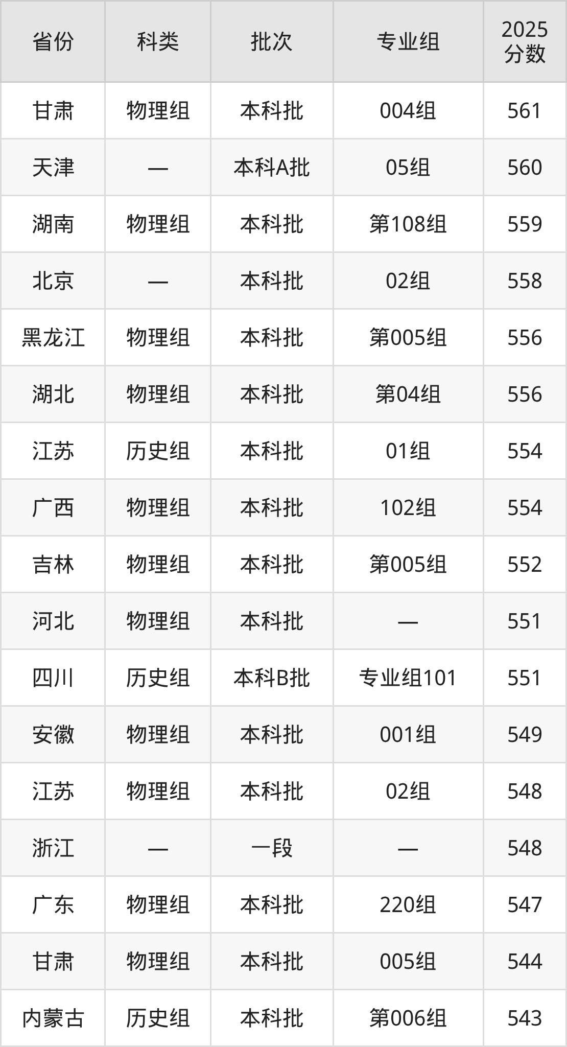 下面是中北大学2025年在全国各省的录取分数线一览表,供参考: