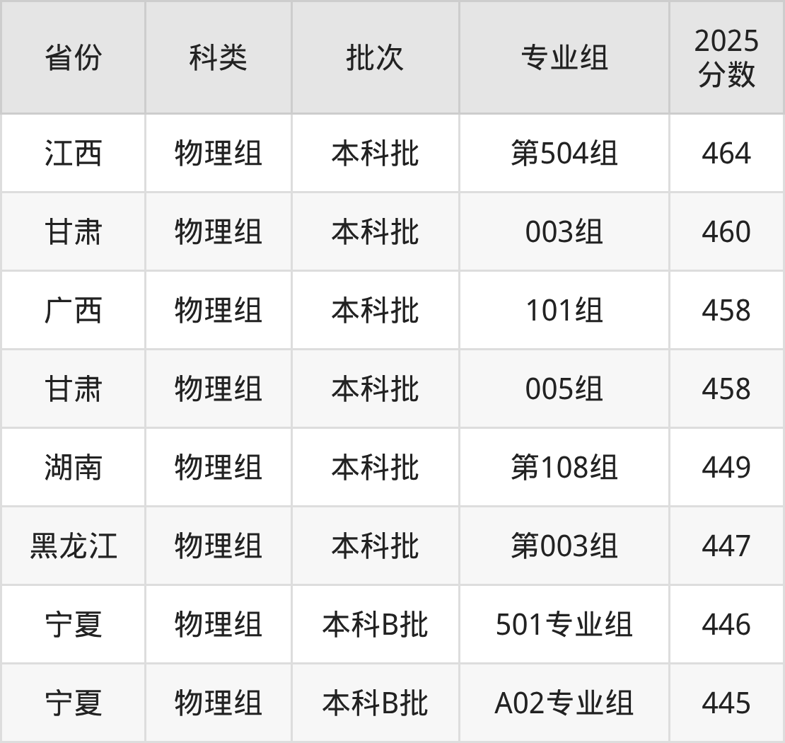 西安文理学院在省外招生的最低分为445分,其次是黑龙江物理组考生,上西安文理学院至少要超本科线87分(447分)。
