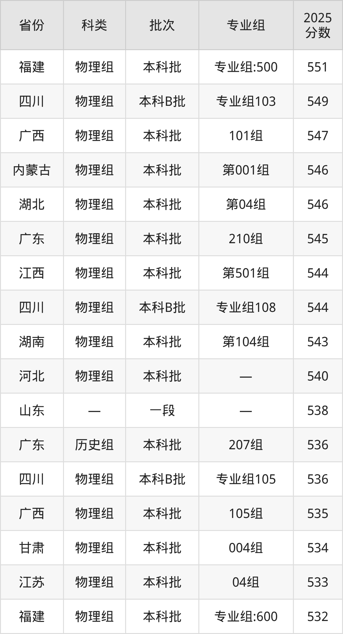 2026届考生如果想知道川北医学院最低多少分能上,可以根据该校近三年的录取最低分进行预估。下面以福建2023-2025年高考招录数据为例,预测2026年川北医学院在福建招生的最低分情况: