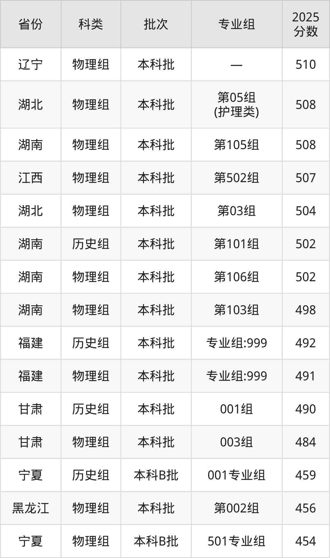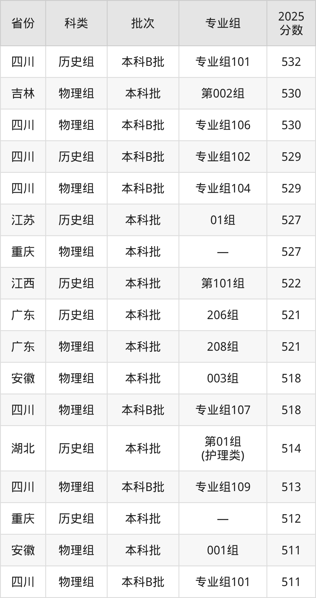 下面是川北医学院2025年在全国各省的录取分数线一览表,供参考: