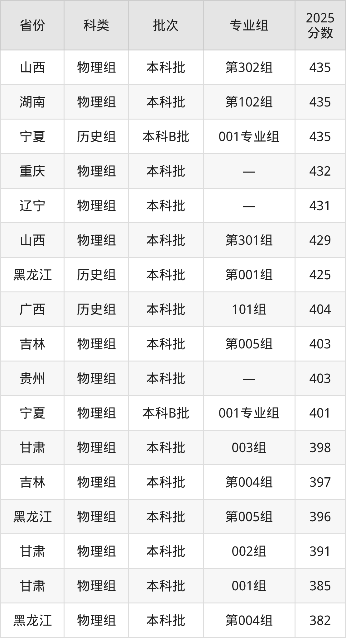 下面是华北理工大学轻工学院2025年在全国各省的录取分数线一览表,供参考: