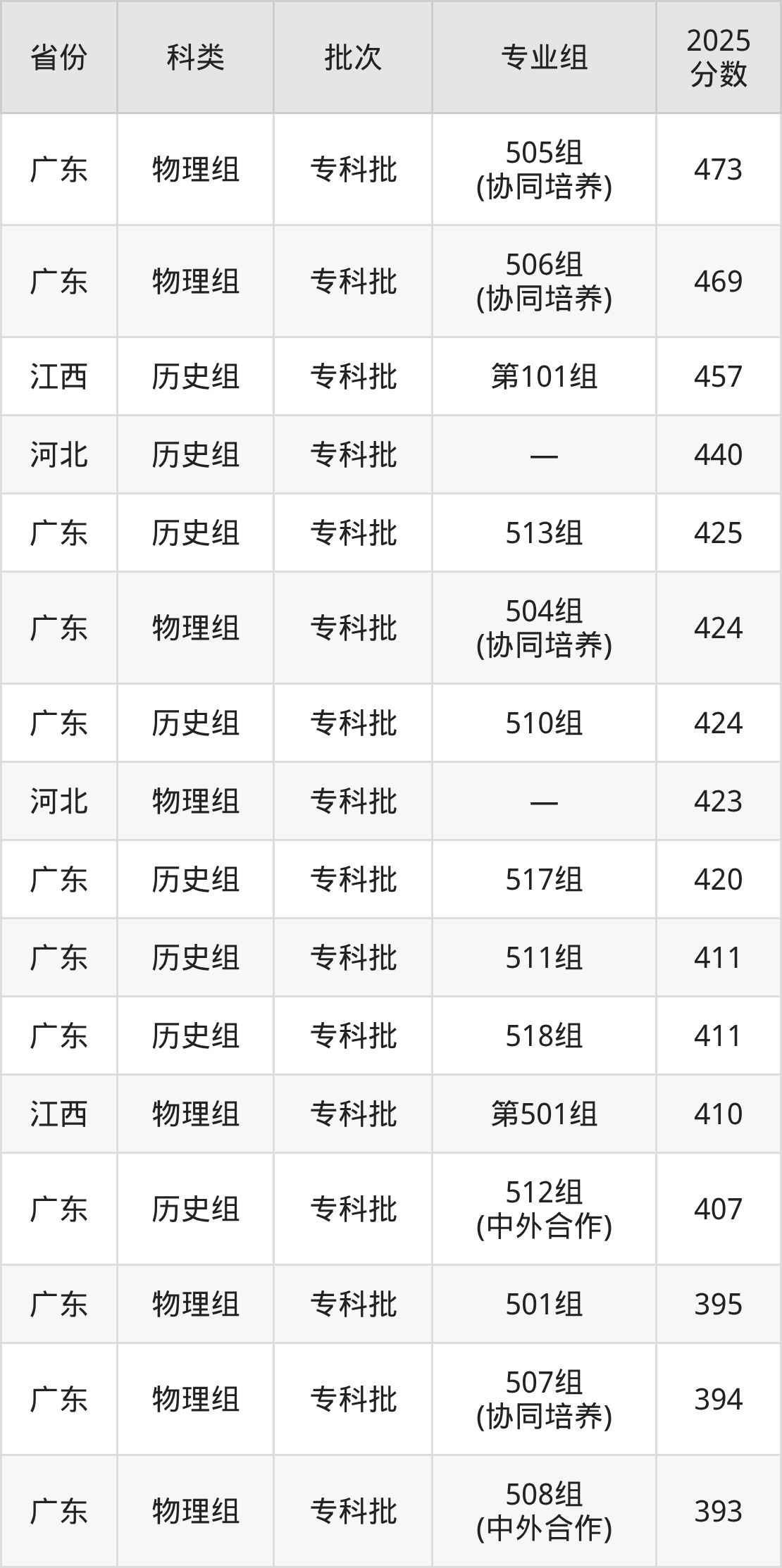 而江西地区历史组考生的分数门槛最高,2025年广东工程职业技术学院第101组在江西招生最低分为457分,考生至少要超专科线167分才有可能被录取。