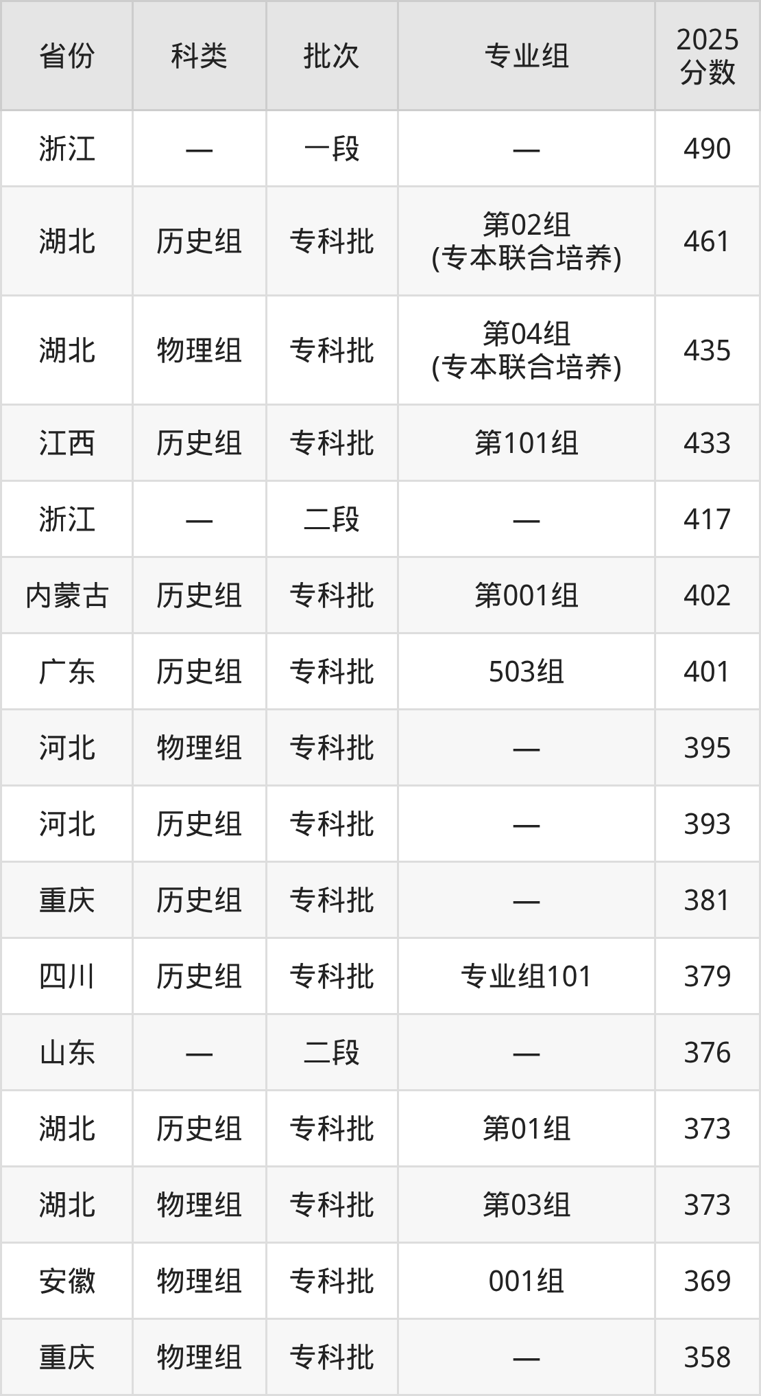 而浙江地区考生的分数门槛最高,2025年荆州职业技术学院在浙江招生最低分为490分,考生至少要超一段线0分才有可能被录取。