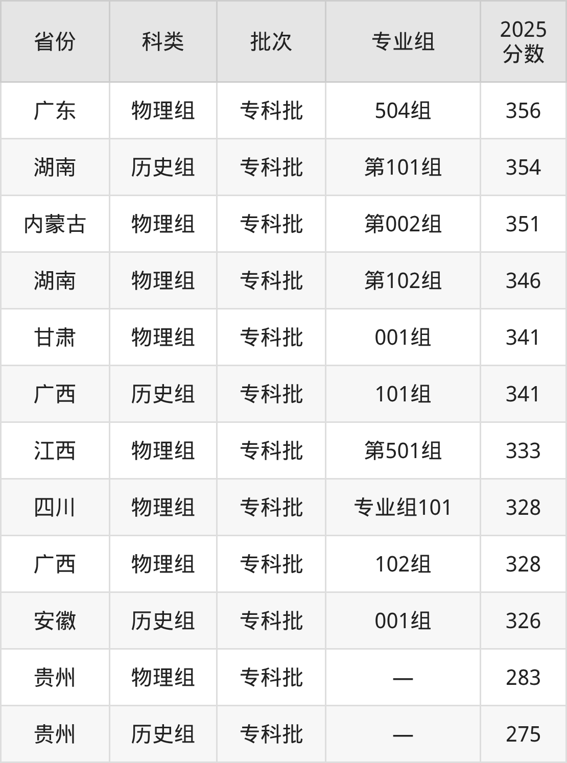 下面是荆州职业技术学院2025年在全国各省的录取分数线一览表,供参考: