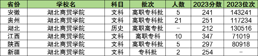 2023年湖北商贸学院在山西、安徽、江西、山东、湖南等11个地区招收专科考生。