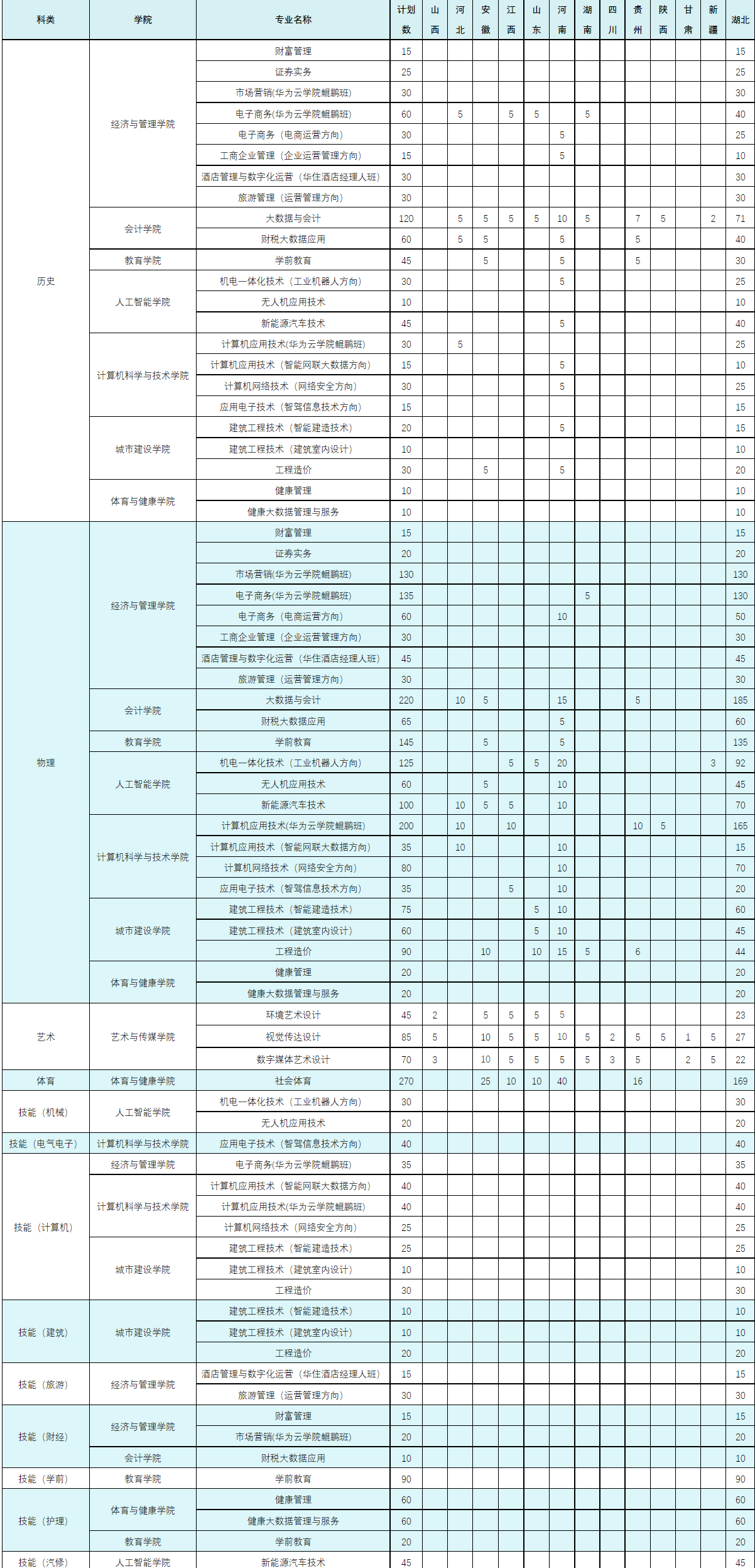2024年湖北商贸学院在山东、河南、贵州、陕西、甘肃等招收专科批次考生。
