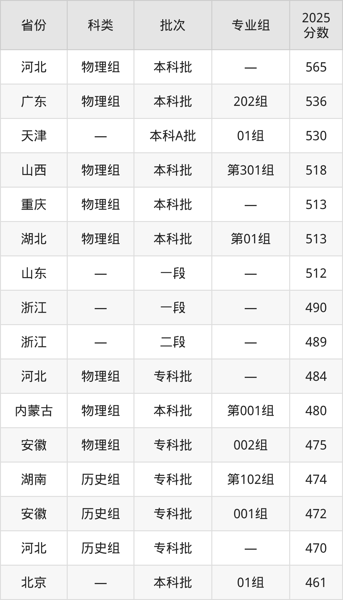 而河北地区物理组考生的分数门槛最高,2025年北京科技职业大学在河北招生最低分为565分,考生至少要超本科线106分才有可能被录取。