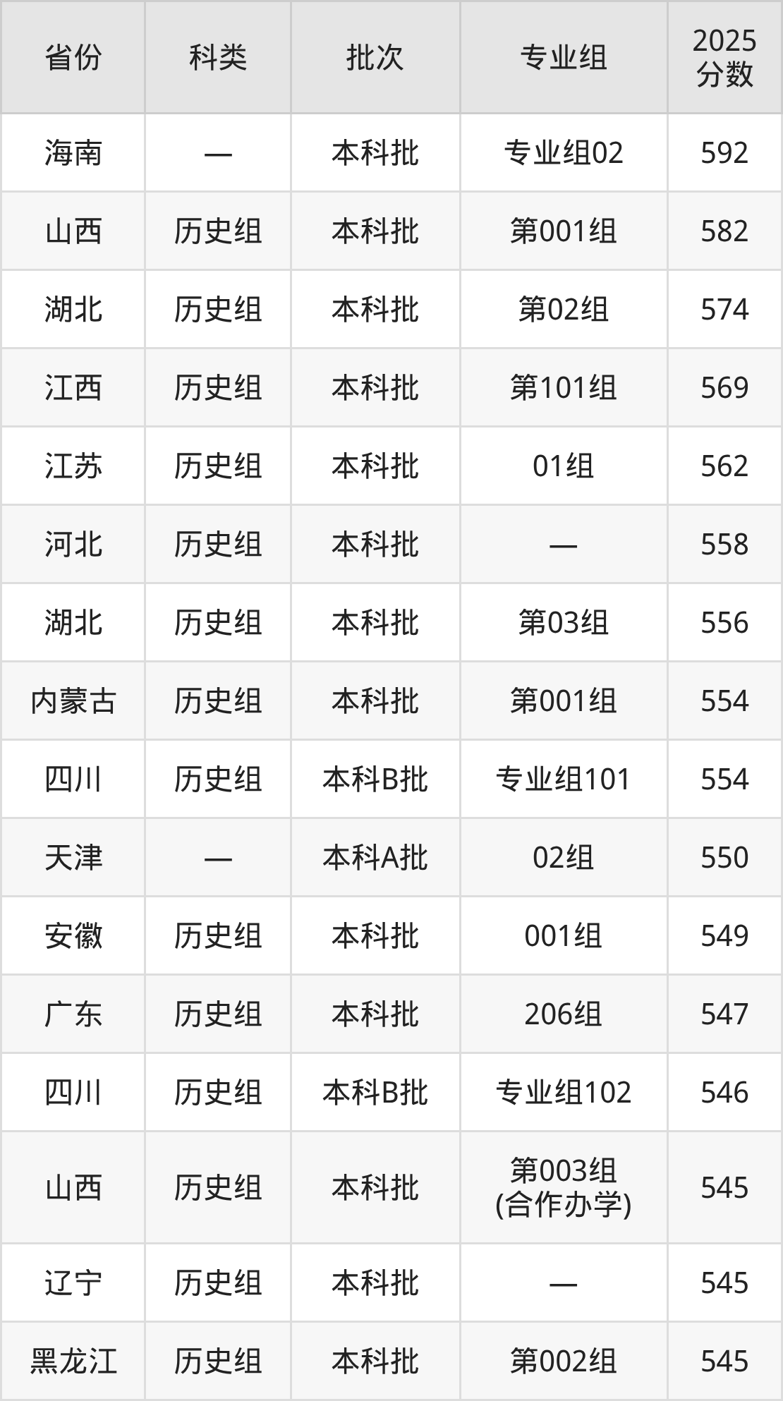 下面是烟台大学2025年在全国各省的录取分数线一览表,供参考: