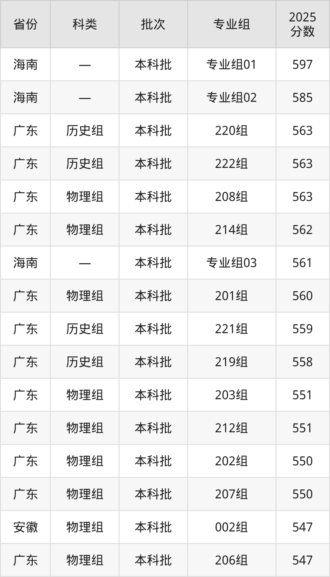 而海南地区考生的分数门槛最高,2025年佛山大学专业组01在海南招生最低分为597分,考生至少要超本科线117分才有可能被录取。