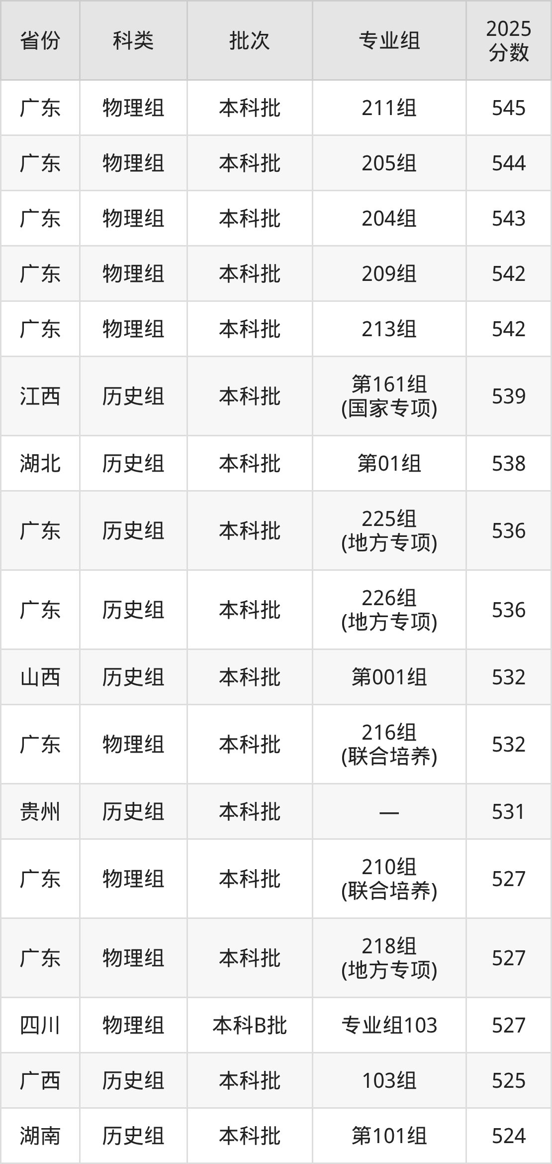 下面是佛山大学2025年在全国各省的录取分数线一览表,供参考: