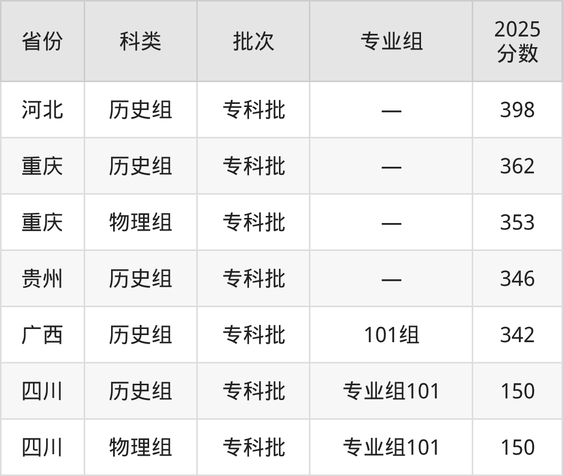 下面是川南幼儿师范高等专科学校2025年在全国各省的录取分数线一览表,供参考: