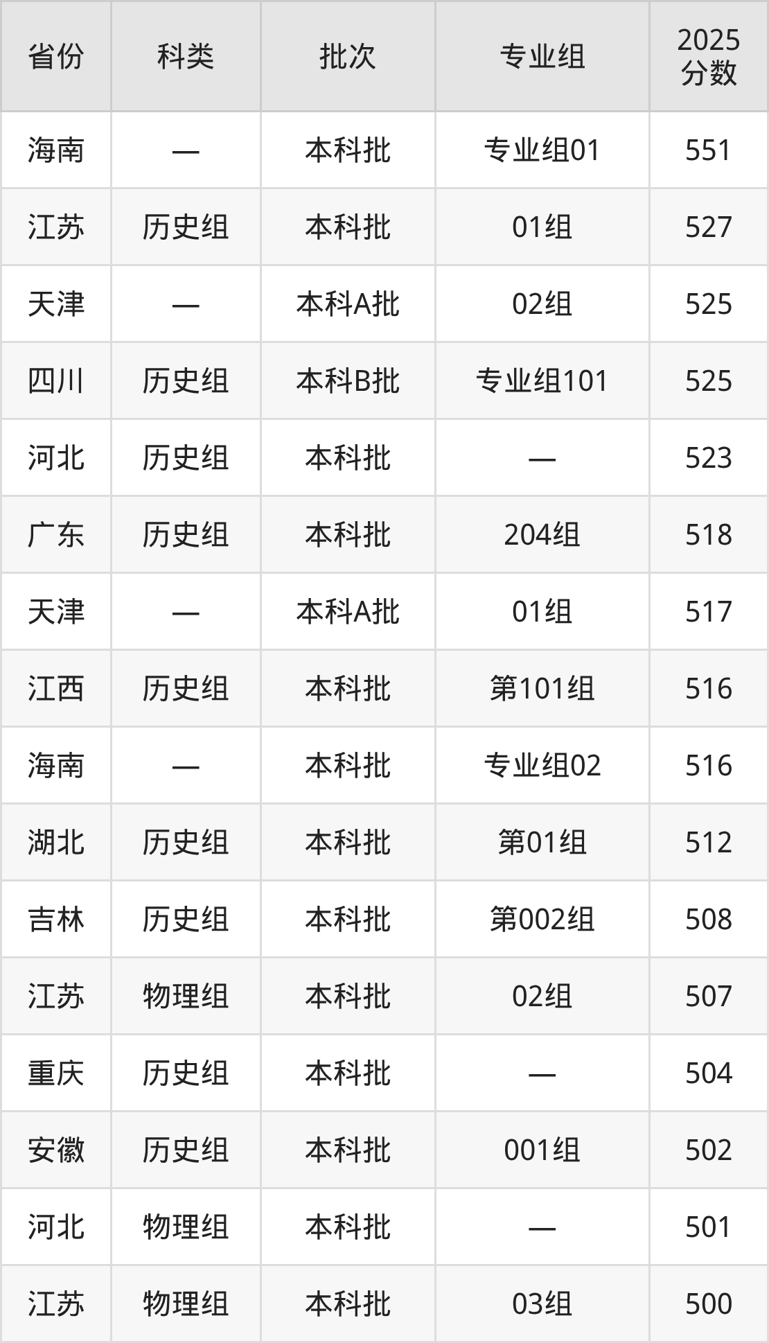 而海南地区考生的分数门槛最高,2025年吉林工商学院专业组01在海南招生最低分为551分,考生至少要超本科线71分才有可能被录取。