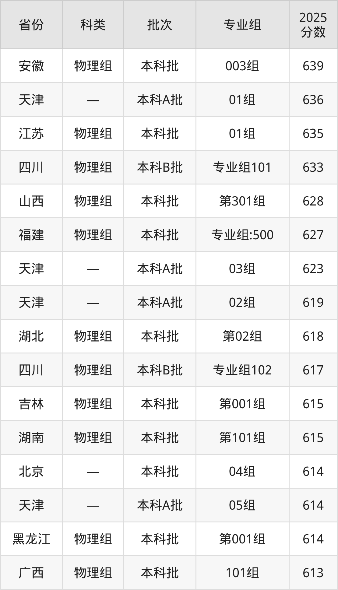 而安徽地区物理组考生的分数门槛最高,2025年首都医科大学003组在安徽招生最低分为639分,考生至少要超本科线178分才有可能被录取。
