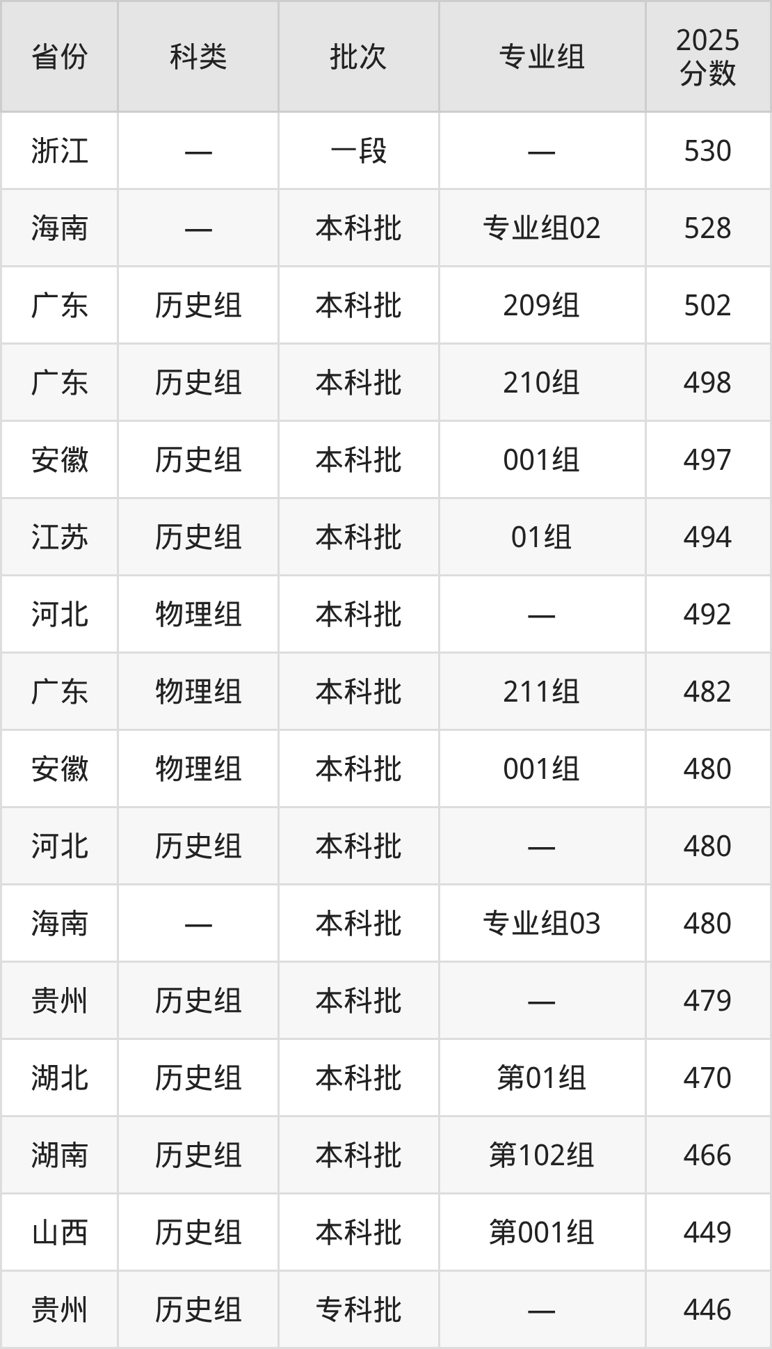 而浙江地区考生的分数门槛最高,2025年汉口学院在浙江招生最低分为530分,考生至少要超一段线40分才有可能被录取。