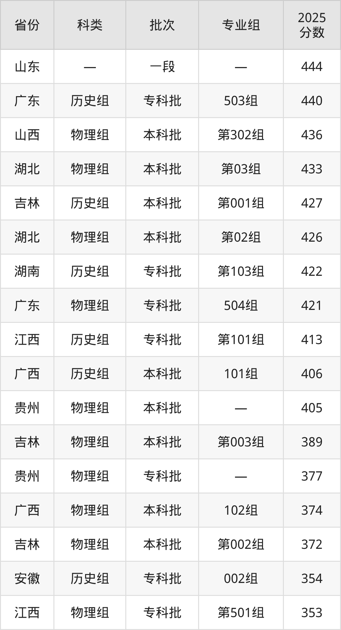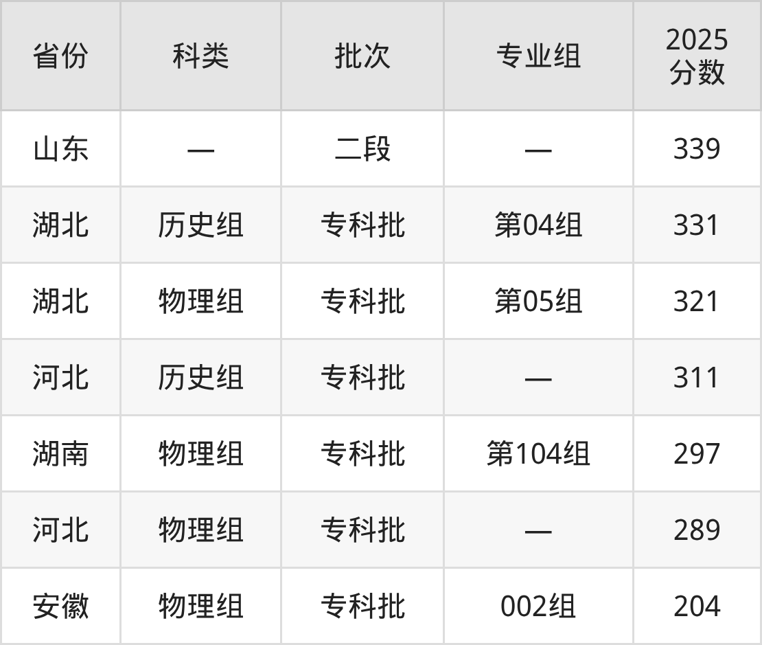 下面是汉口学院2025年在全国各省的录取分数线一览表,供参考: