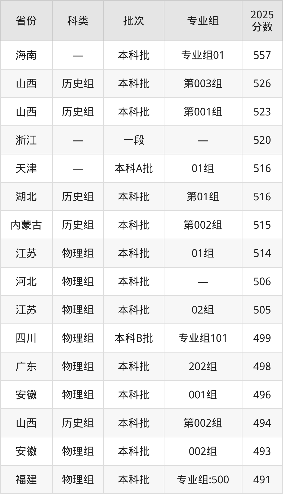 而海南地区考生的分数门槛最高,2025年枣庄学院专业组01在海南招生最低分为557分,考生至少要超本科线77分才有可能被录取。