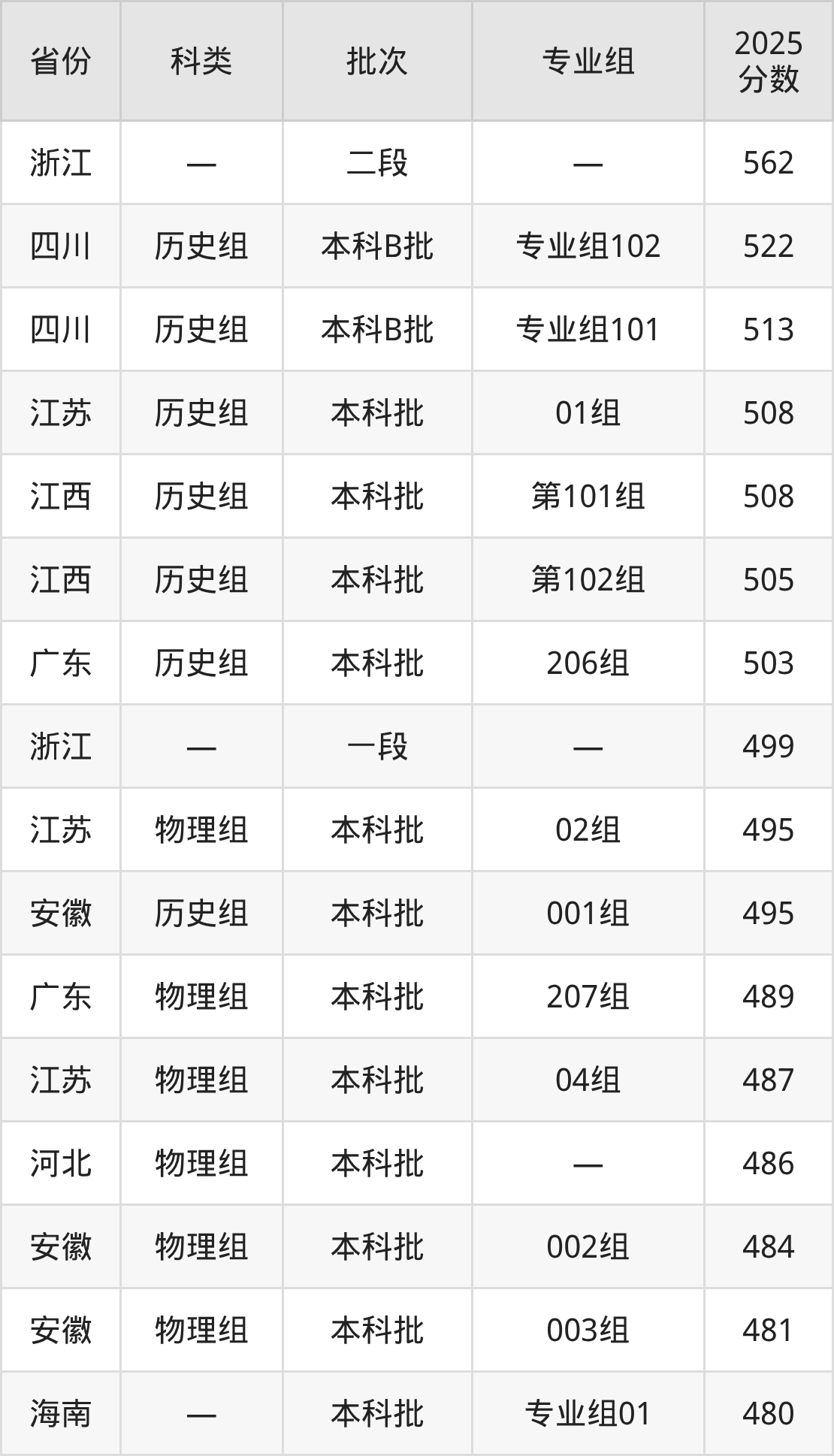 下面是浙江农林大学暨阳学院2025年在全国各省的录取分数线一览表,供参考: