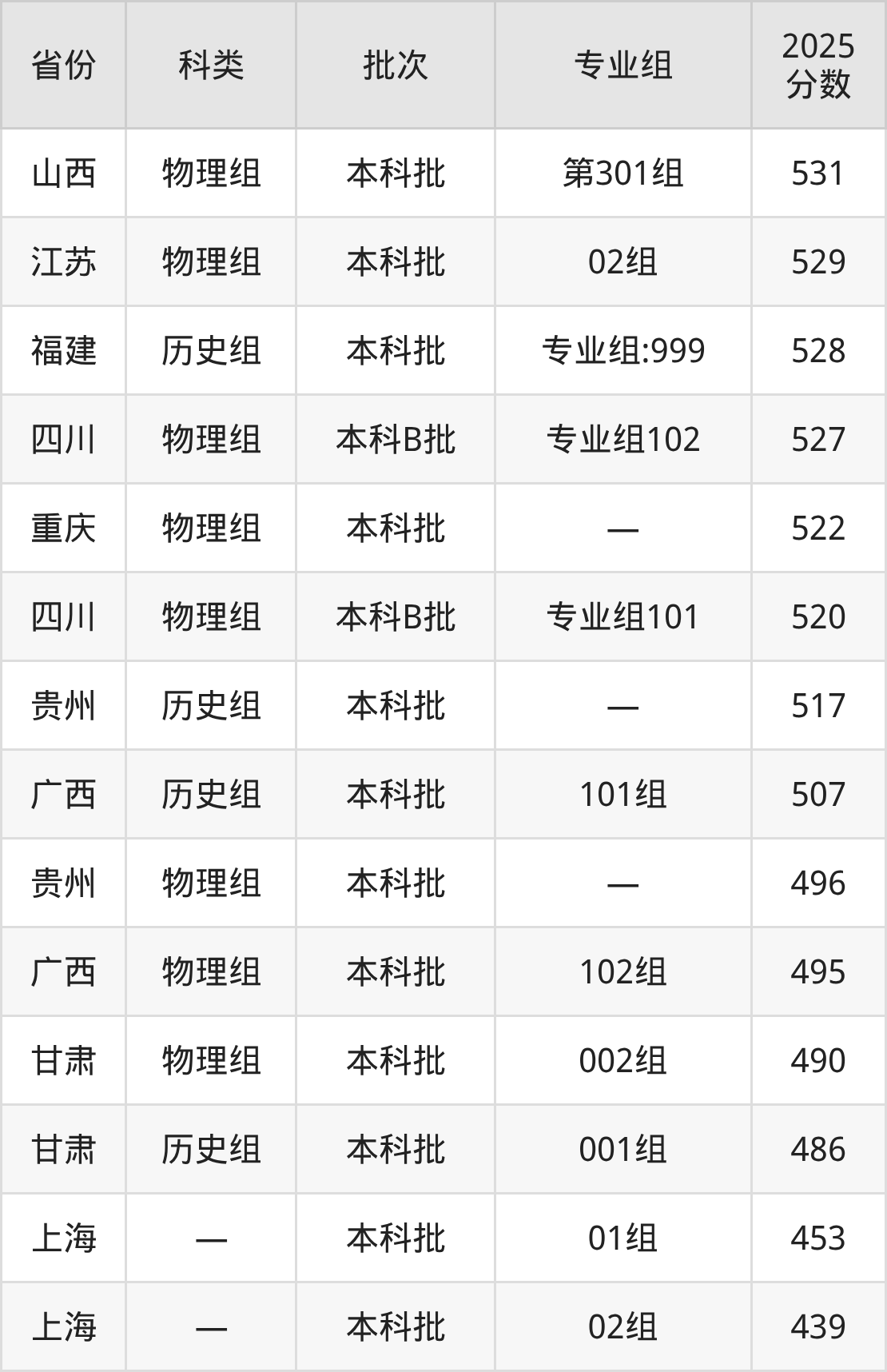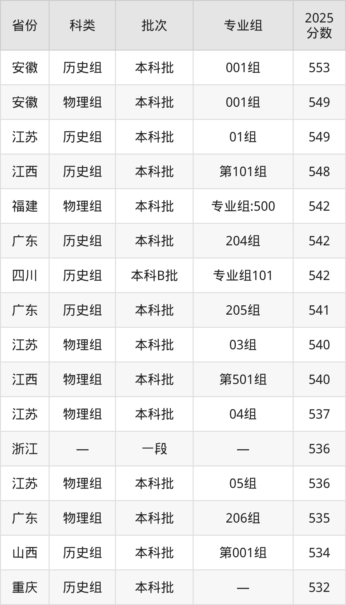 而安徽地区历史组考生的分数门槛最高,2025年苏州城市学院001组在安徽招生最低分为553分,考生至少要超本科线76分才有可能被录取。
