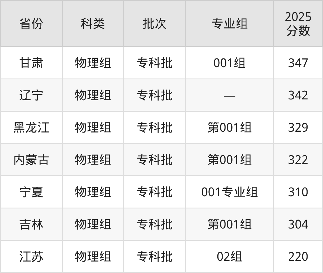 2025年江苏建筑职业技术学院在全国普通批次招生的录取分数范围位于220~490分之间,其中省内分数范围为220分~407分,物理组最低分专业组为“02组”,考生220分即可报考,历史组最低分专业组为“01组”,考生370分即可报考。