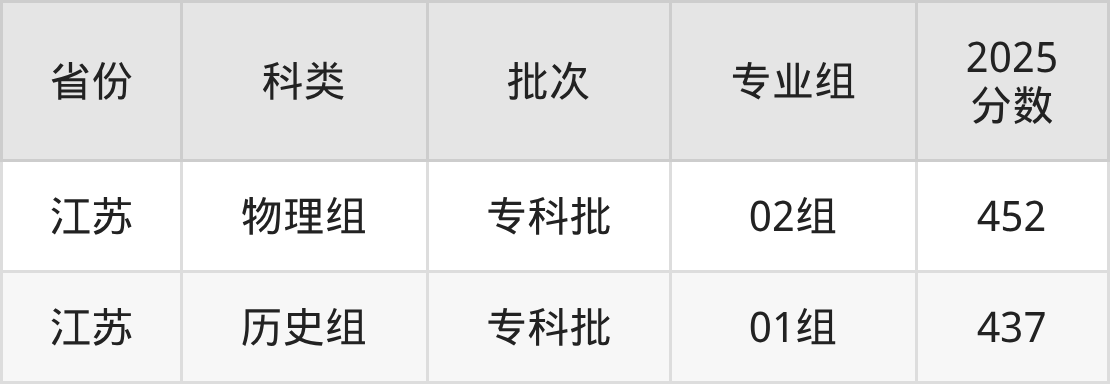 2025年苏州工艺美术职业技术学院在全国普通批次招生的录取分数范围位于437~452分之间,其中省内分数范围为437分~452分,物理组最低分专业组为“02组”,考生452分即可报考,历史组最低分专业组为“01组”,考生437分即可报考。