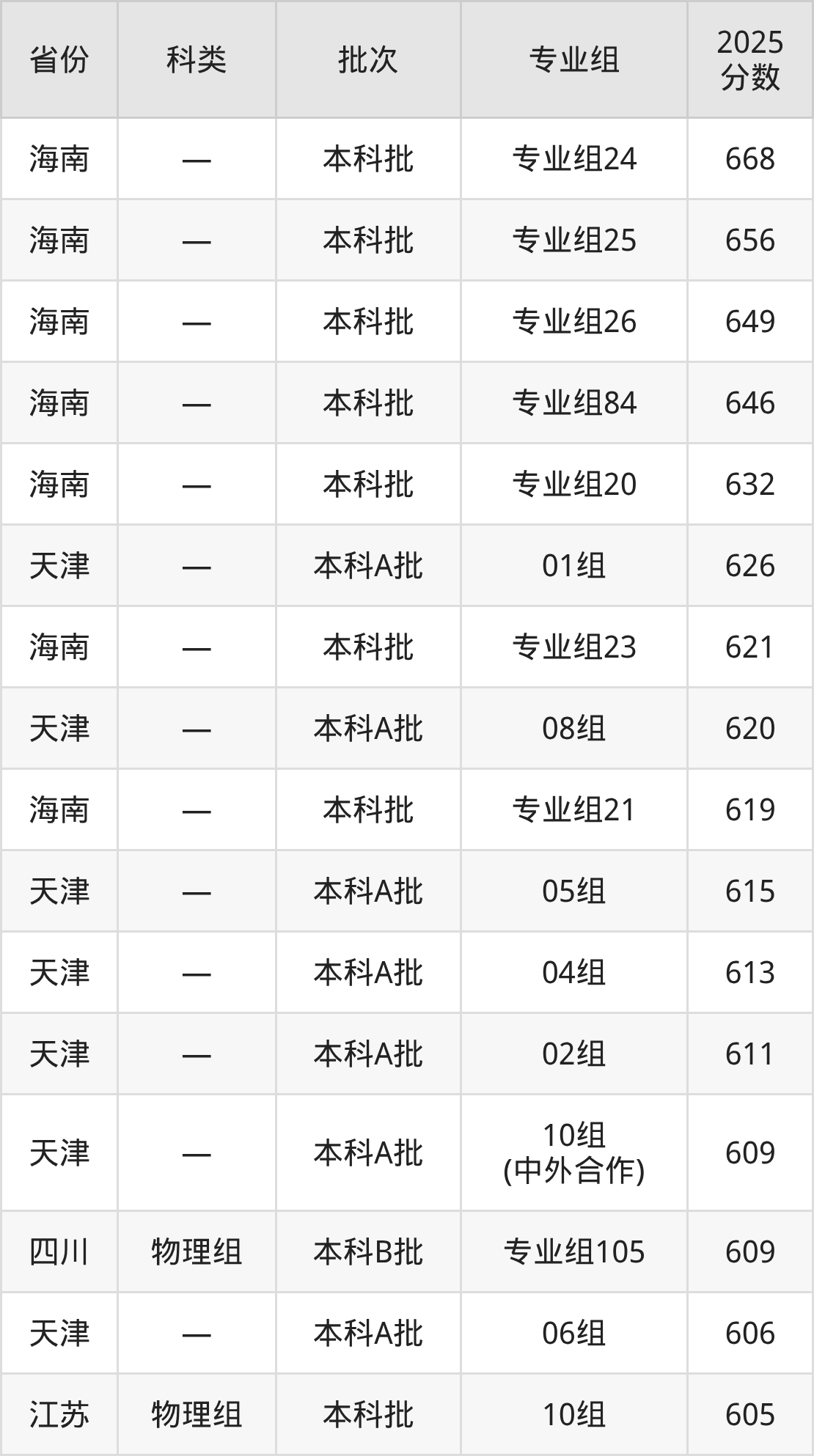 海南大学2026年录取分数需在高招结束官方数据公布后更新,2026届有意向报考该校的同学,可以在填报志愿时参考海南大学2025年录取分数线: