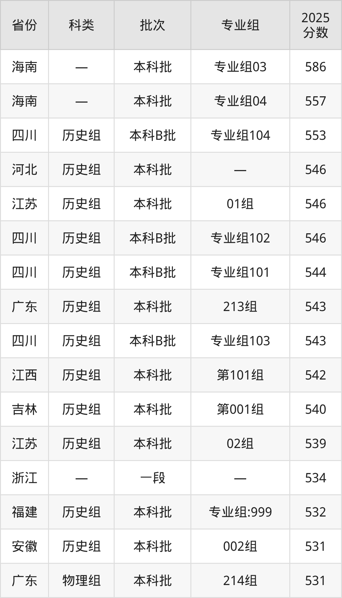 而海南地区考生的分数门槛最高,2025年内江师范学院专业组03在海南招生最低分为586分,考生至少要超本科线106分才有可能被录取。