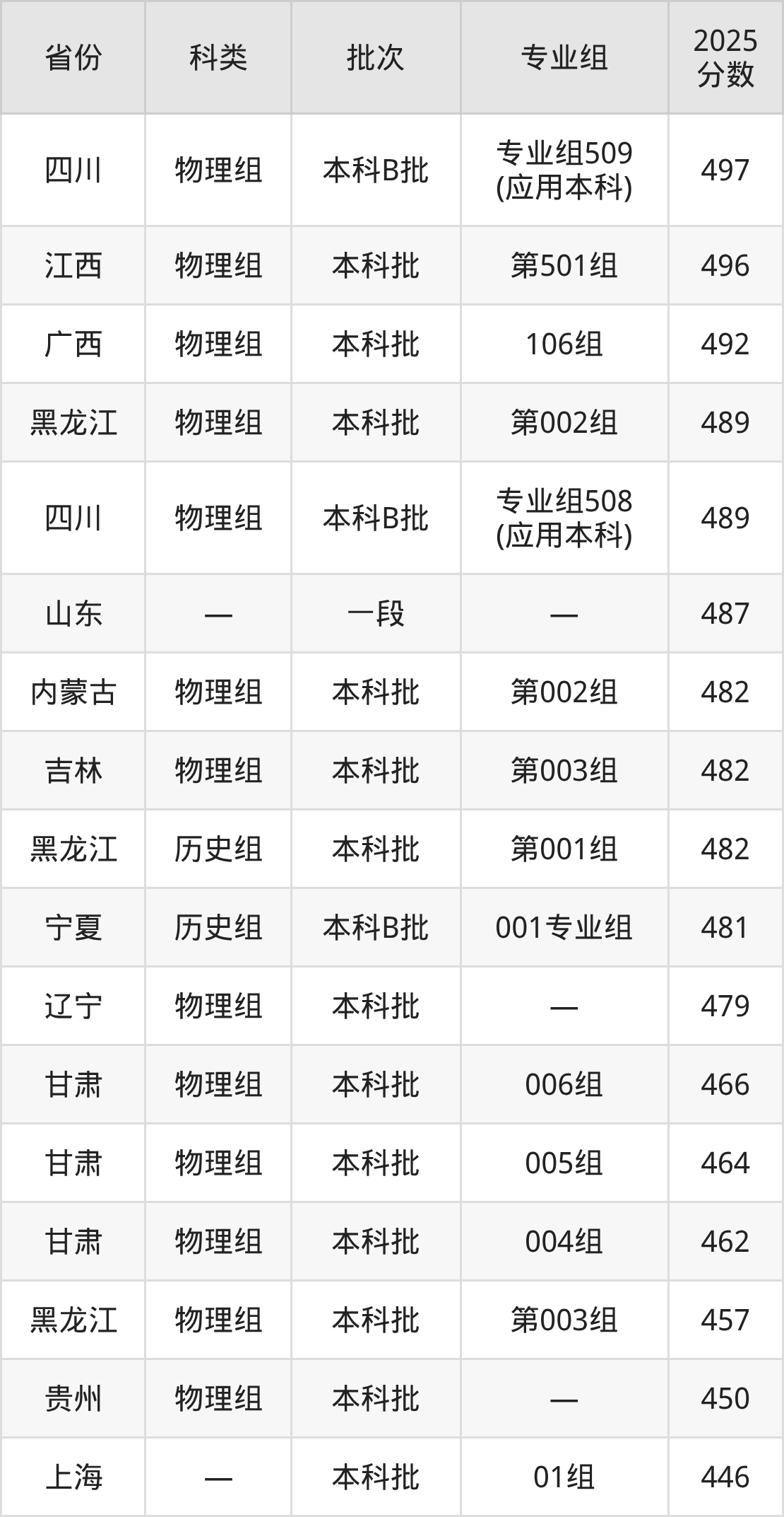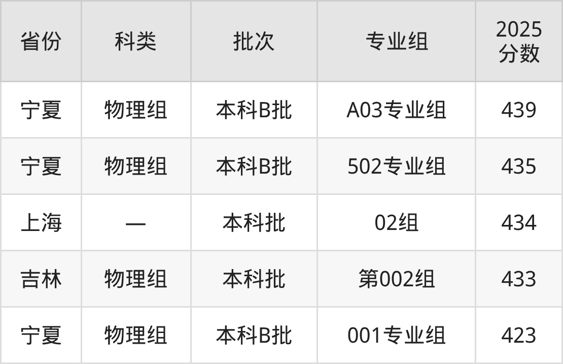 内江师范学院在省外招生的最低分为423分,其次是吉林物理组考生,上内江师范学院至少要超本科线93分(433分)。