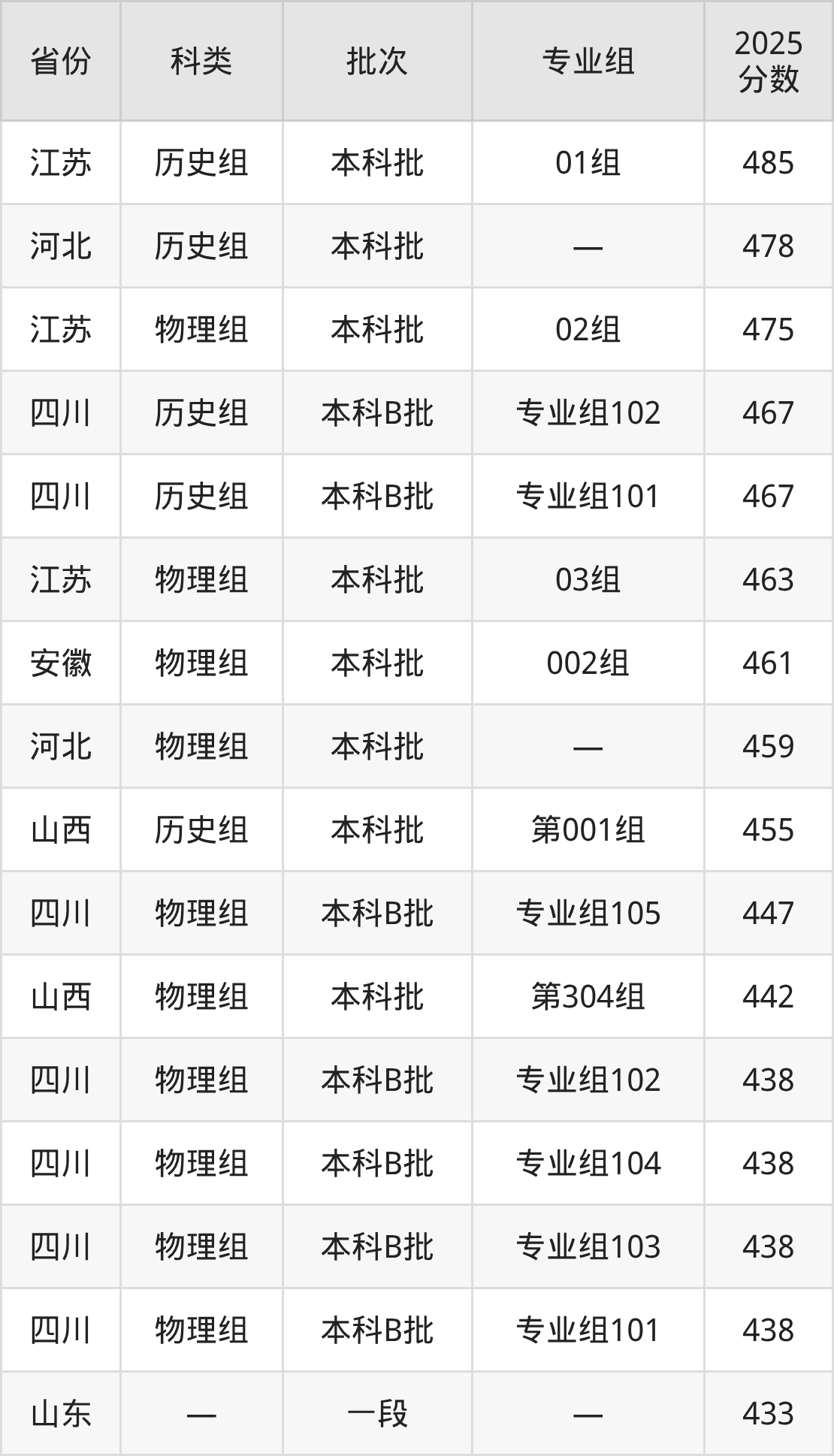 而江苏地区历史组考生的分数门槛最高,2025年银川能源学院01组在江苏招生最低分为485分,考生至少要超本科线3分才有可能被录取。