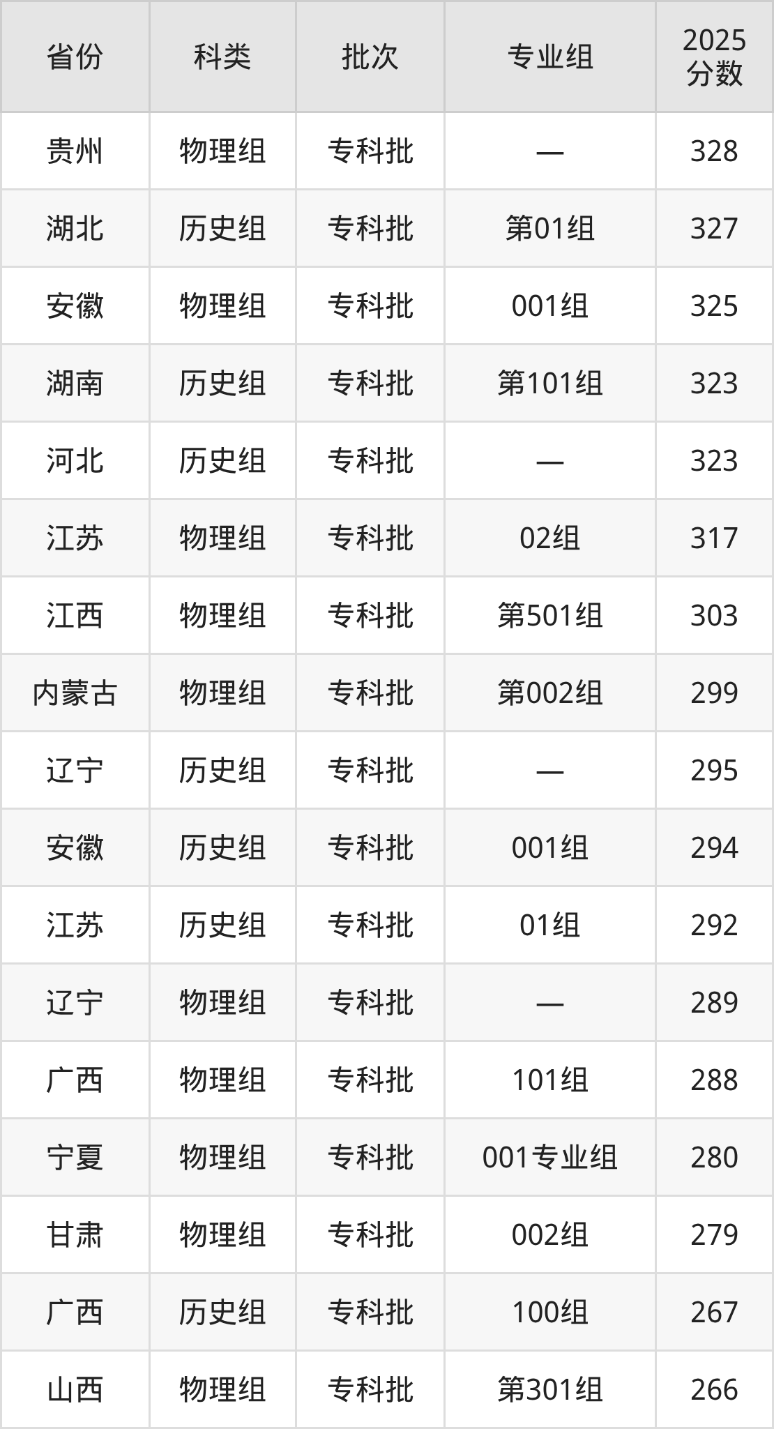 河北对外经贸职业学院在省内招生最低录取分数线为323分,在省外招生最低录取分数线为221分,不同地区、不同科类的考生最低分有差异。