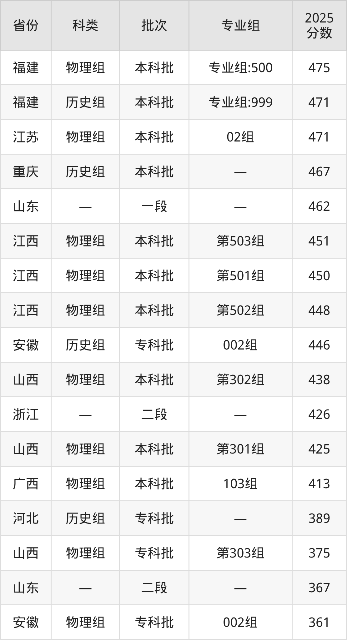 下面是南昌应用技术师范学院2025年在全国各省的录取分数线一览表,供参考:
