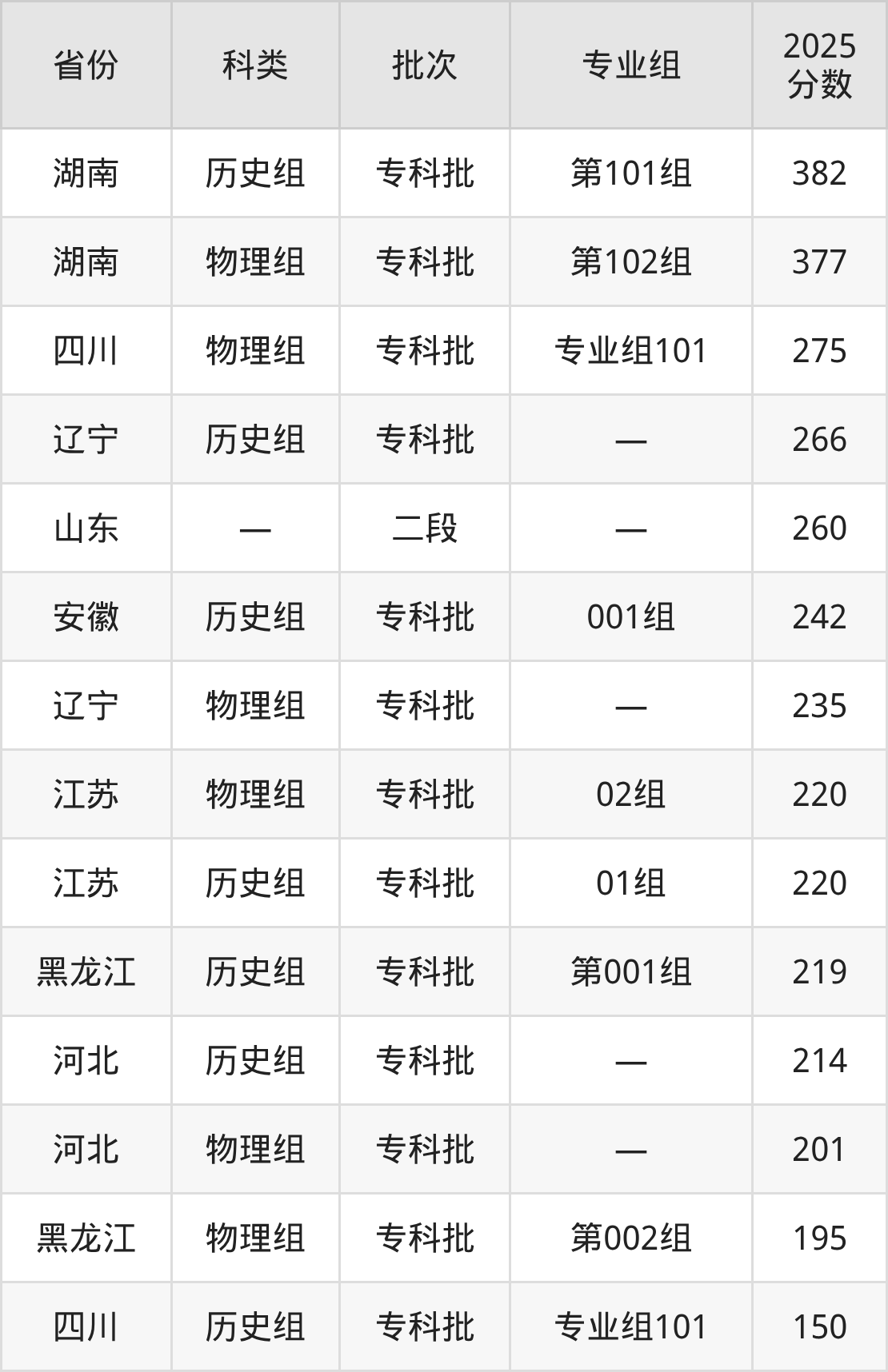 而湖南地区历史组考生的分数门槛最高,2025年唐山海运职业学院第101组在湖南招生最低分为382分,考生至少要超专科线182分才有可能被录取。