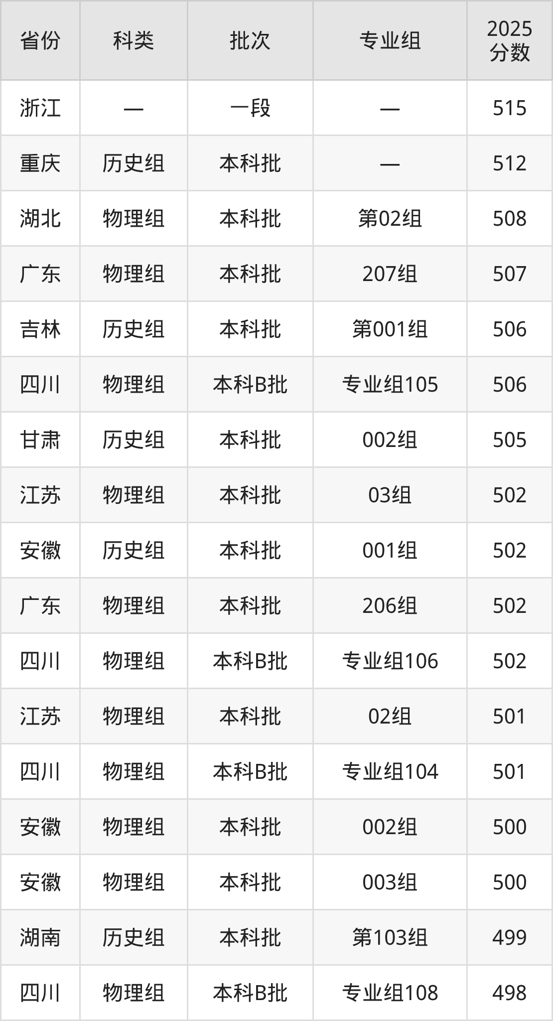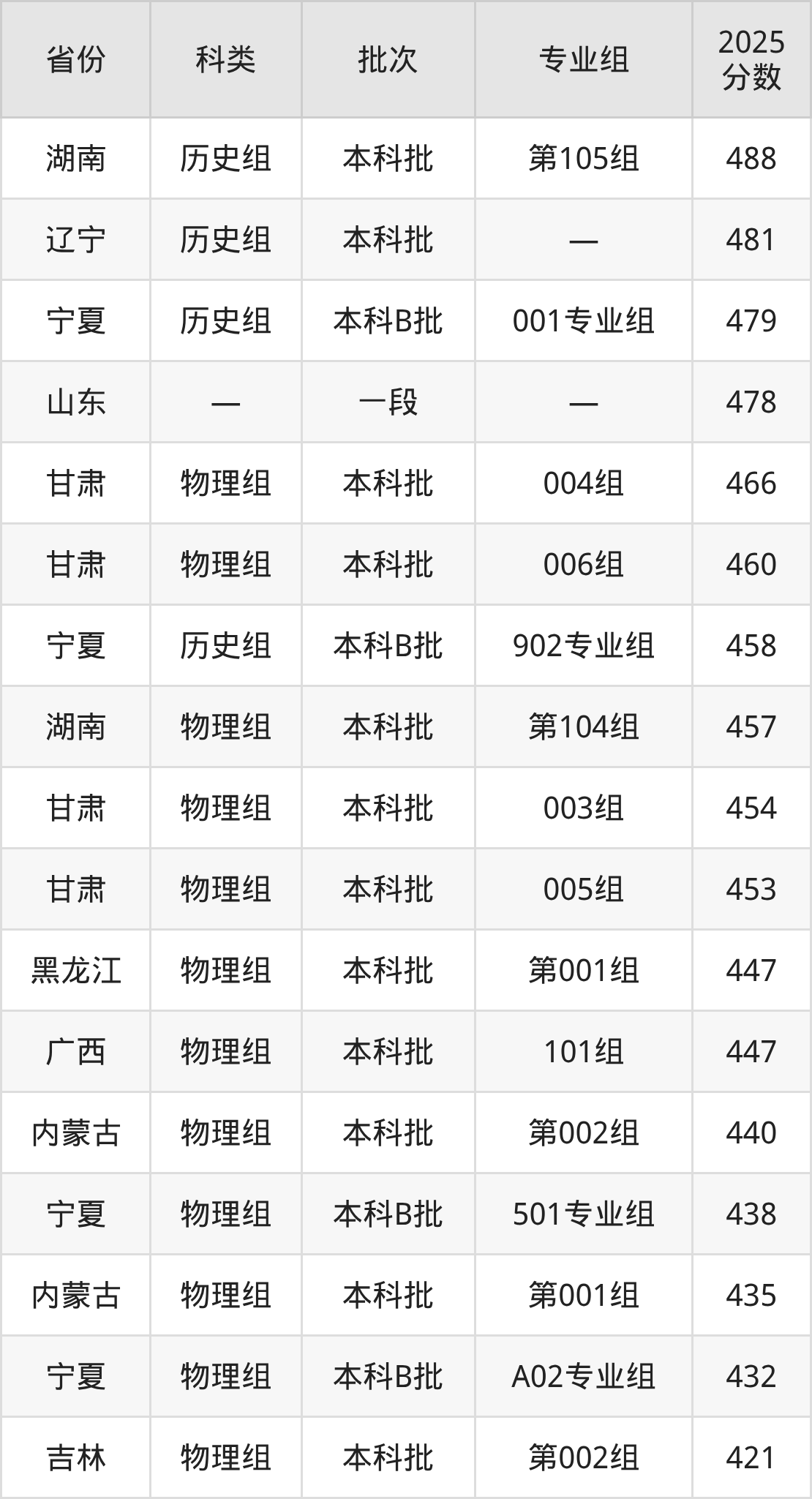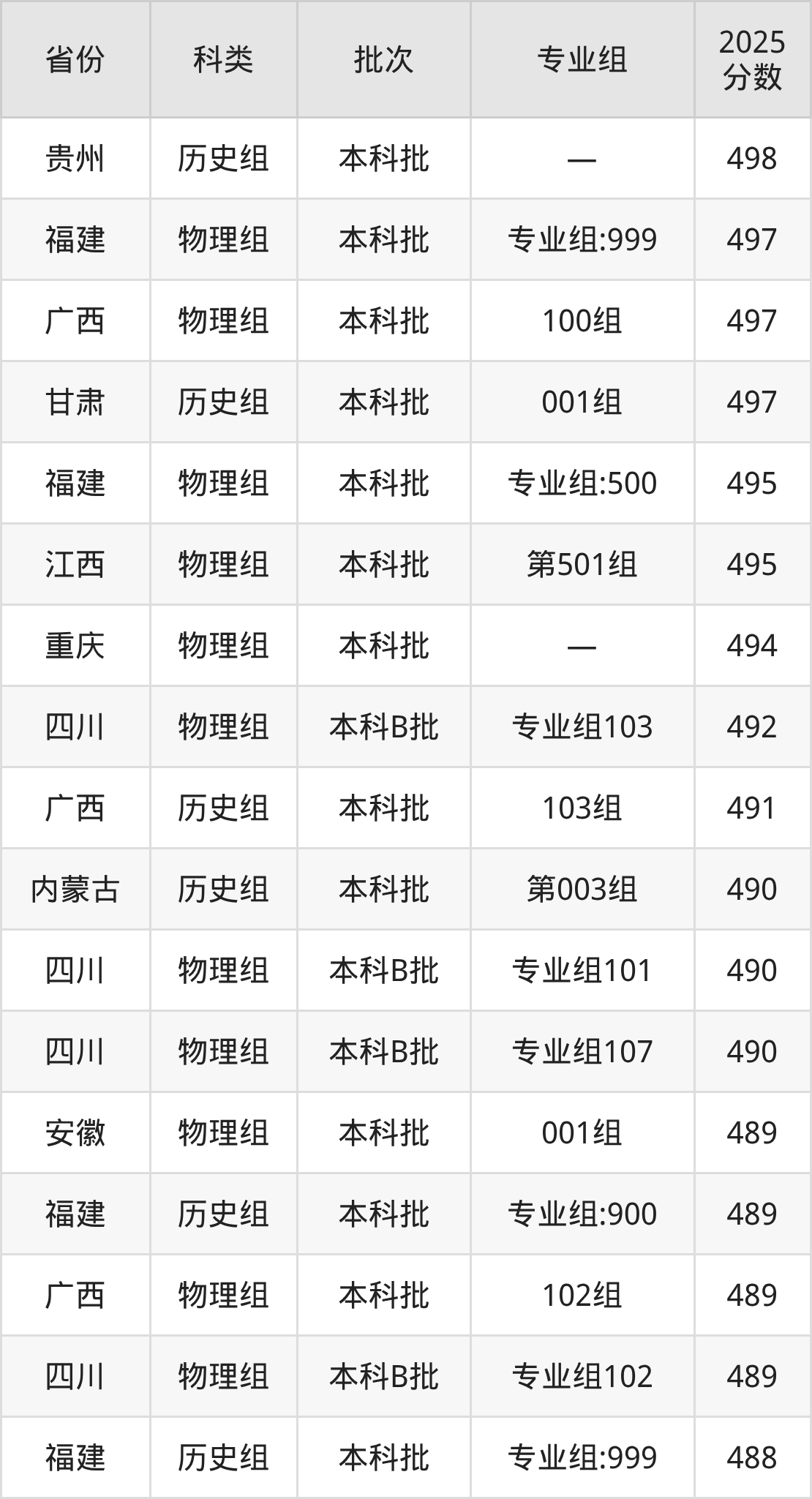 2025年乐山师范学院在全国普通批次招生的录取分数范围位于421~564分之间,其中省内分数范围为489分~542分,历史组最低分专业组为“专业组102”,考生533分即可报考,物理组最低分专业组为“专业组102”,考生489分即可报考。