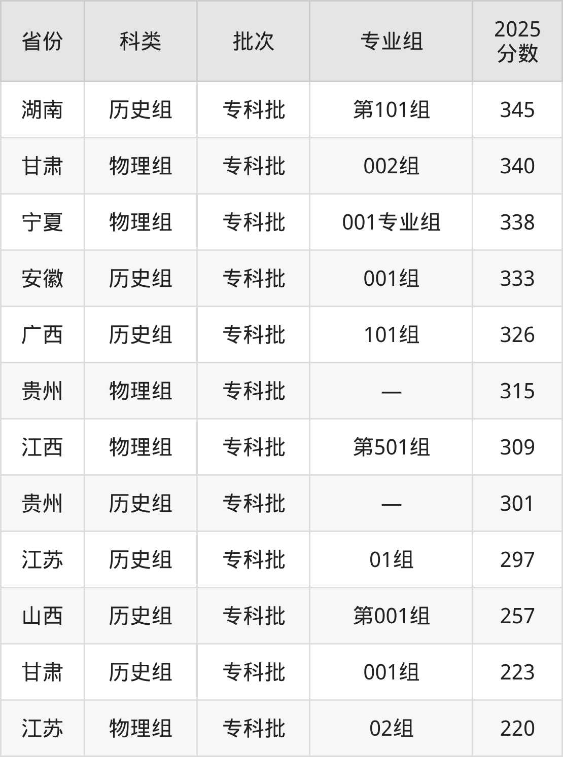 下面是江西工业工程职业技术学院2025年在全国各省的录取分数线一览表,供参考: