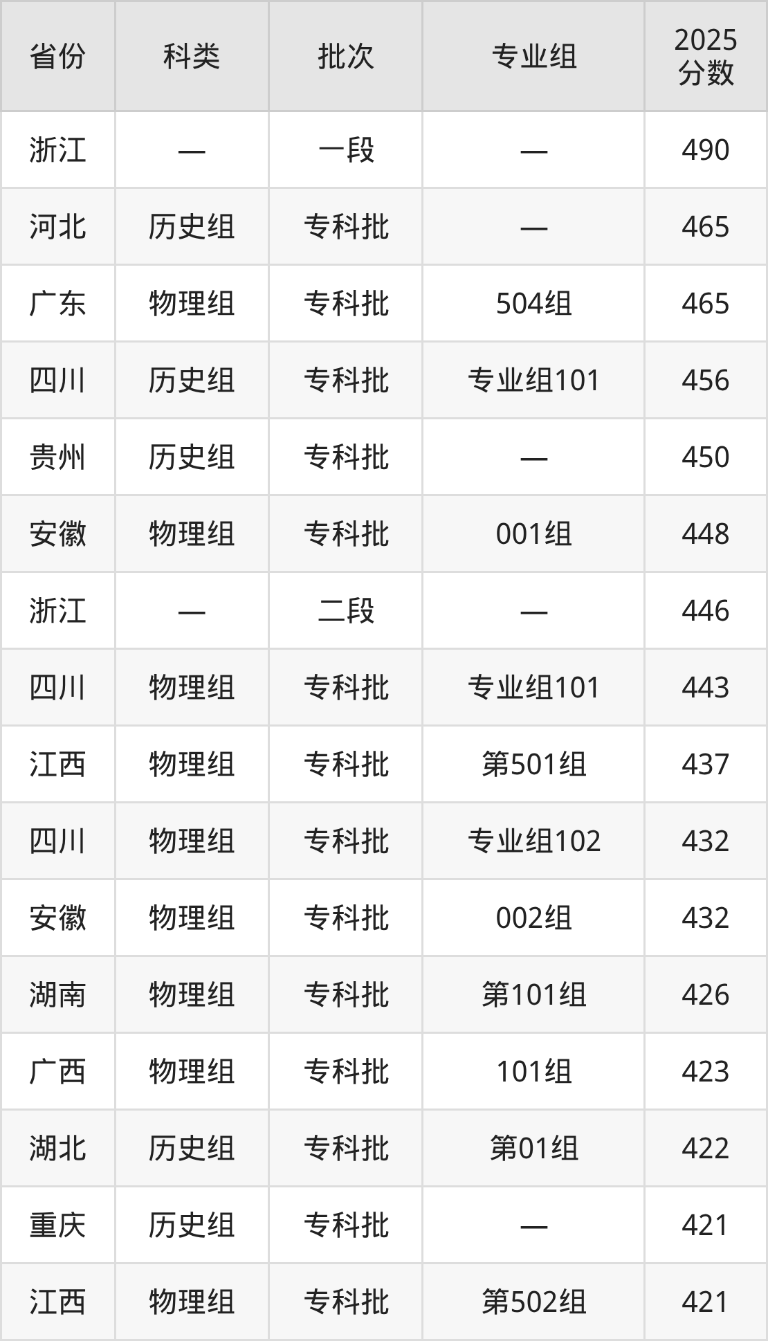 而浙江地区考生的分数门槛最高,2025年重庆工程职业技术学院在浙江招生最低分为490分,考生至少要超一段线0分才有可能被录取。