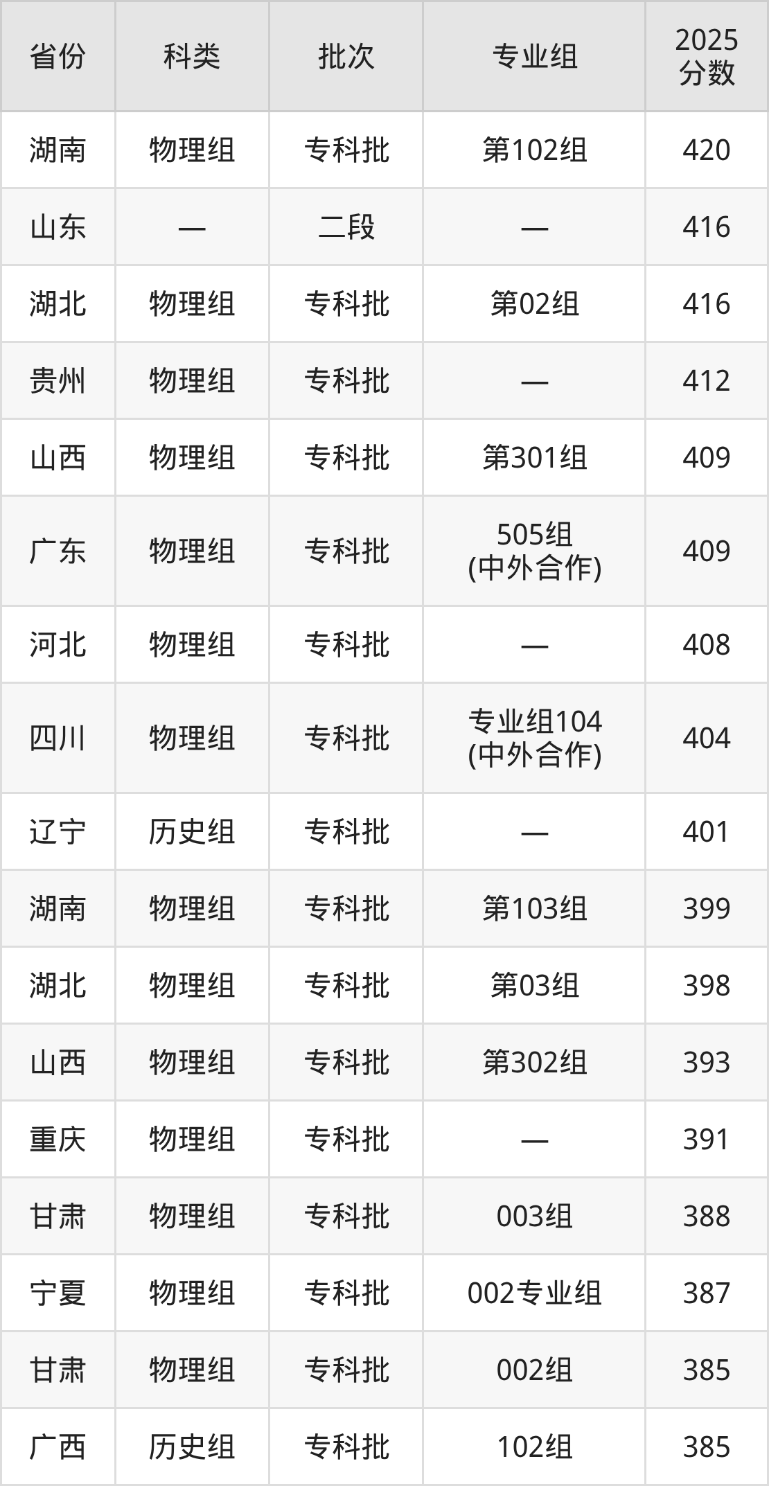 下面是重庆工程职业技术学院2025年在全国各省的录取分数线一览表,供参考: