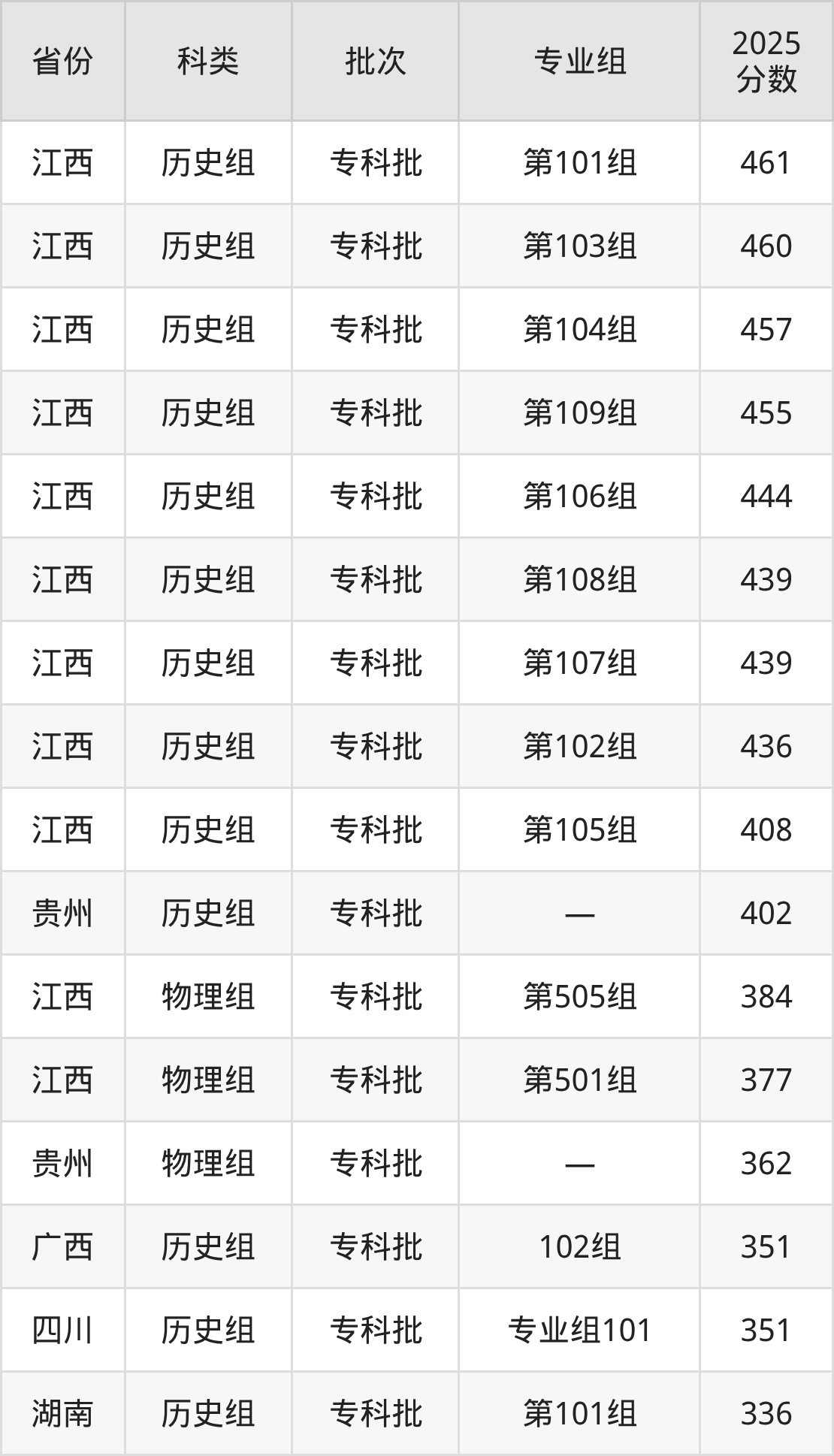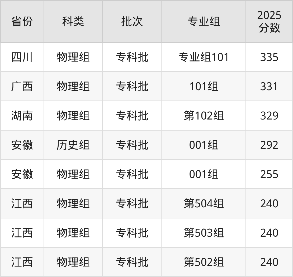 下面是泉州幼儿师范高等专科学校2025年在全国各省的录取分数线一览表,供参考: