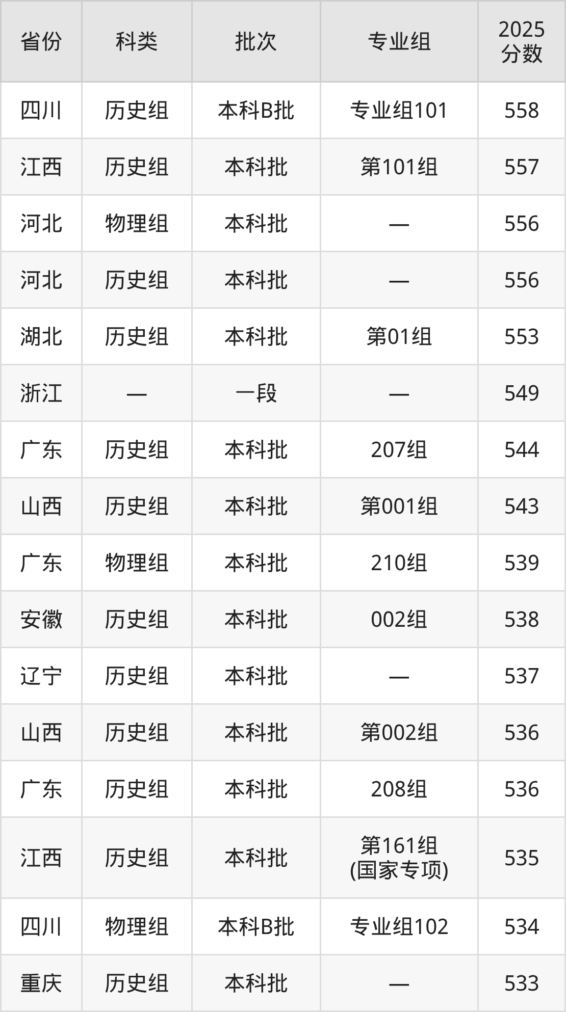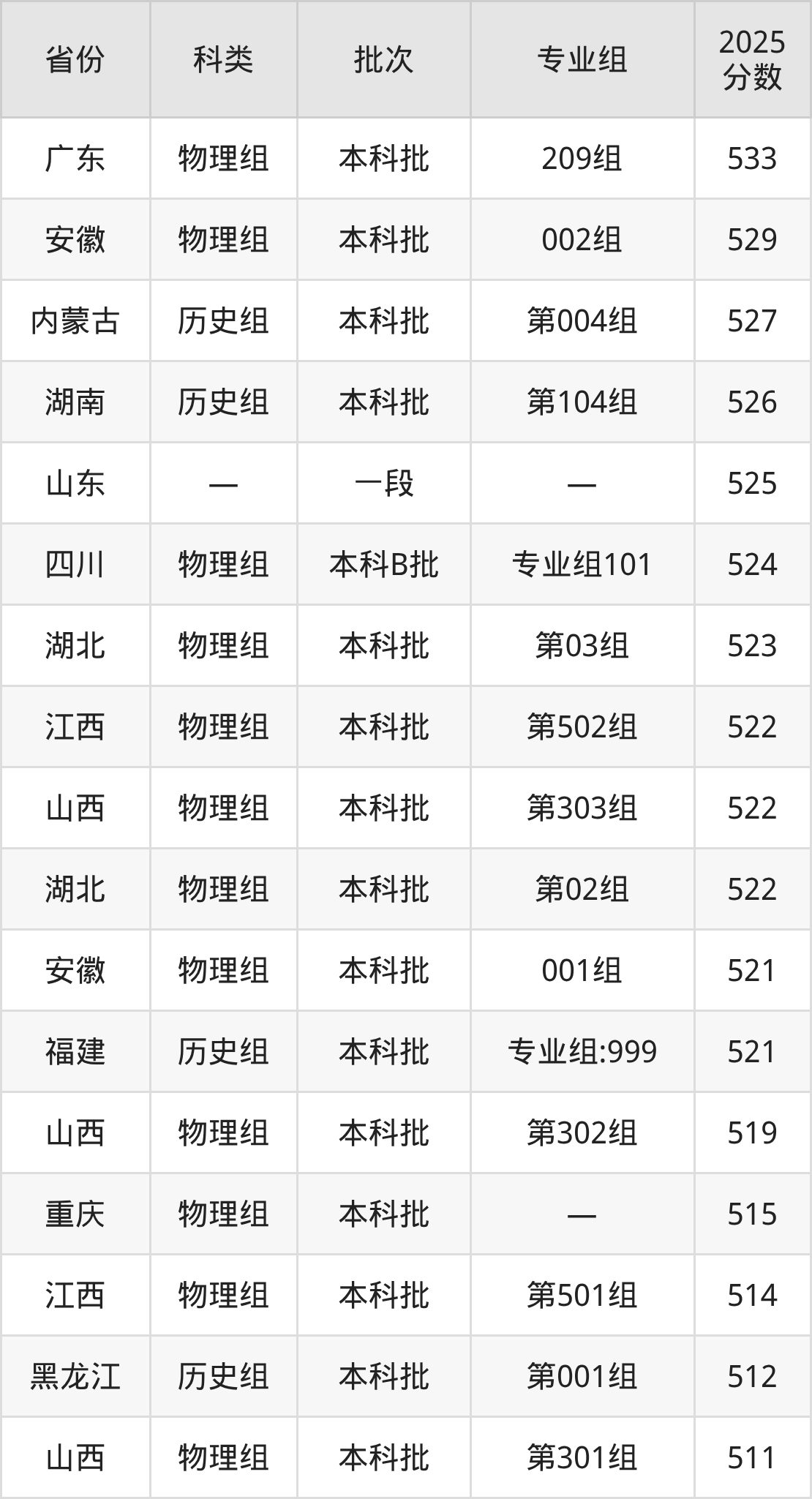 目前能查询到的最新分数为2025年招录数据,2026年中华女子学院录取分数线会在高考招录结束后公布,本届考生可以利用往年分数预估录取概率。