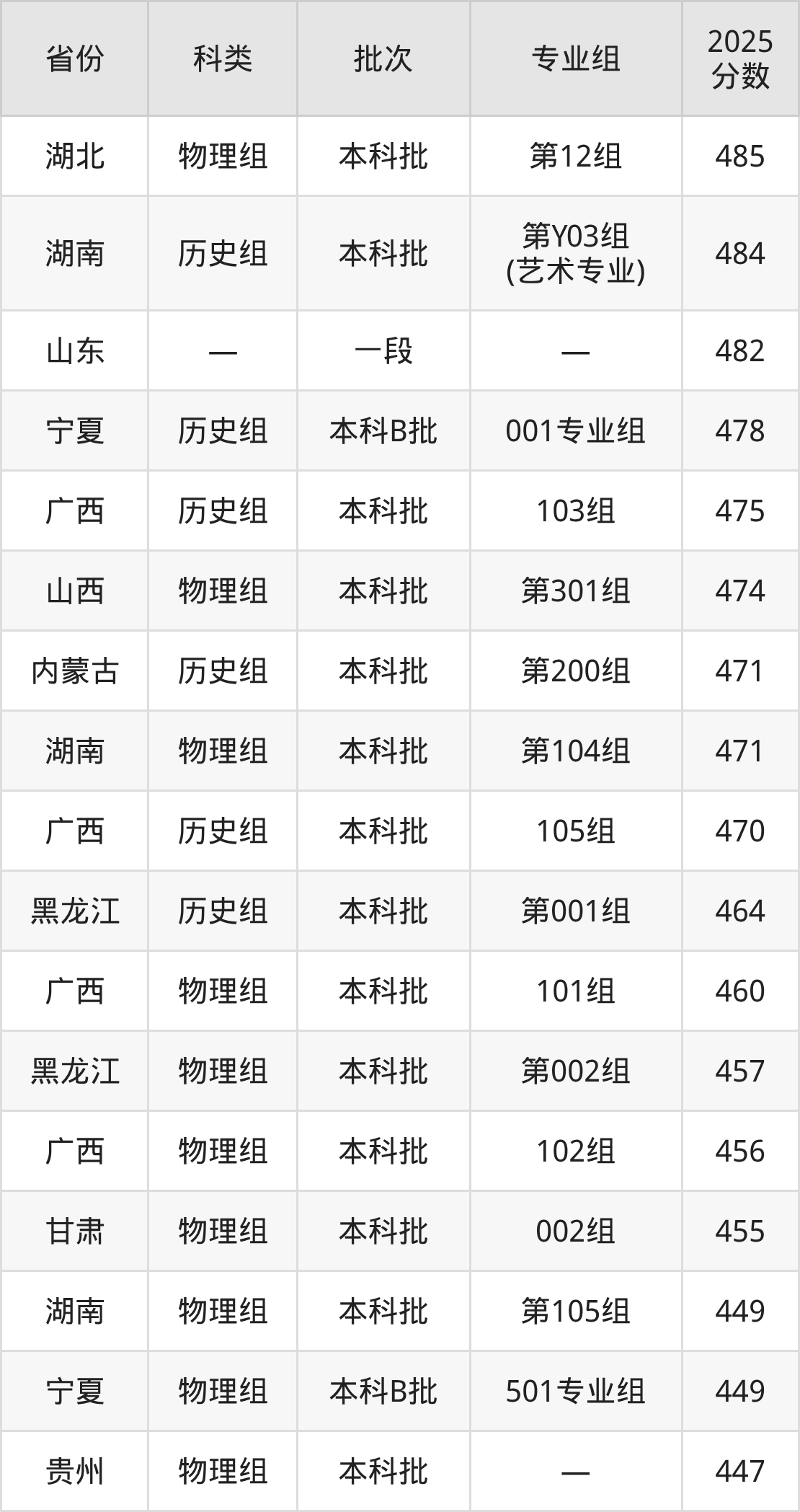 下面是湖北文理学院2025年在全国各省的录取分数线一览表,供参考: