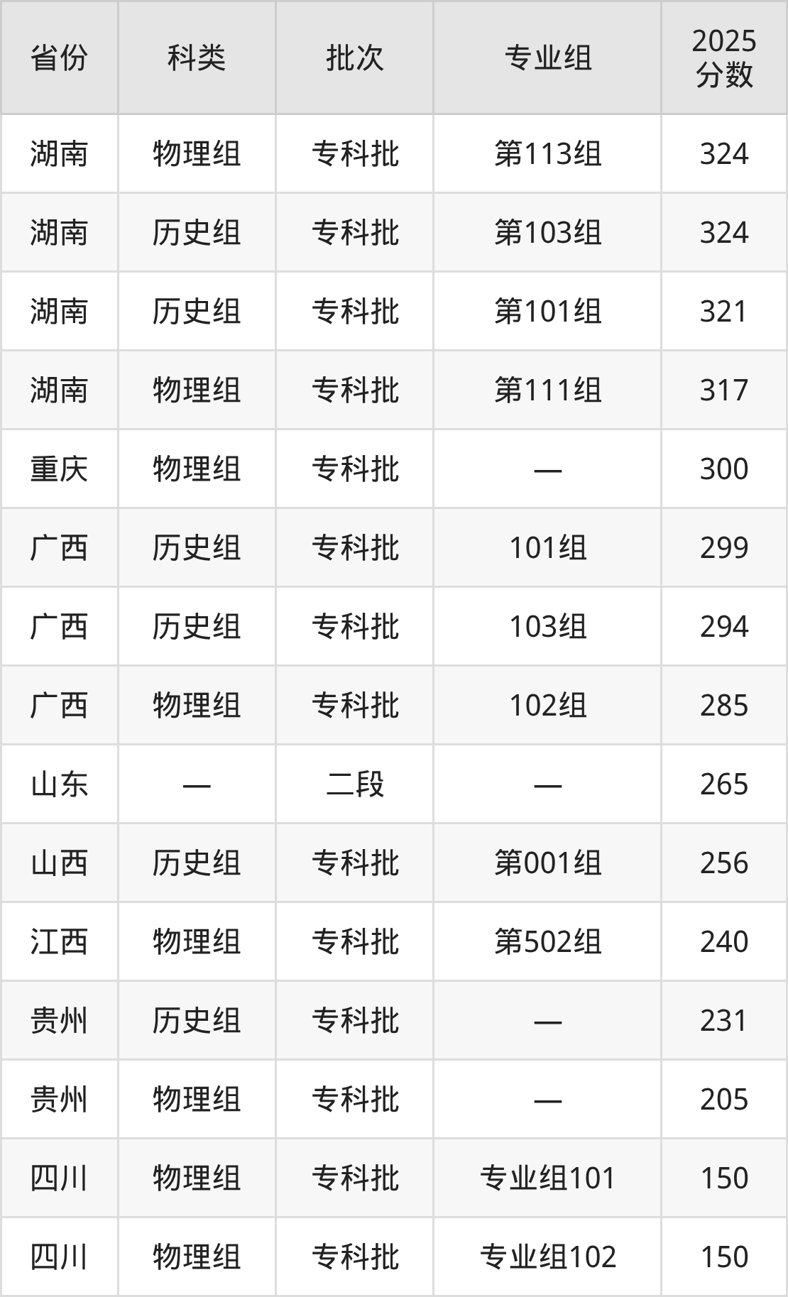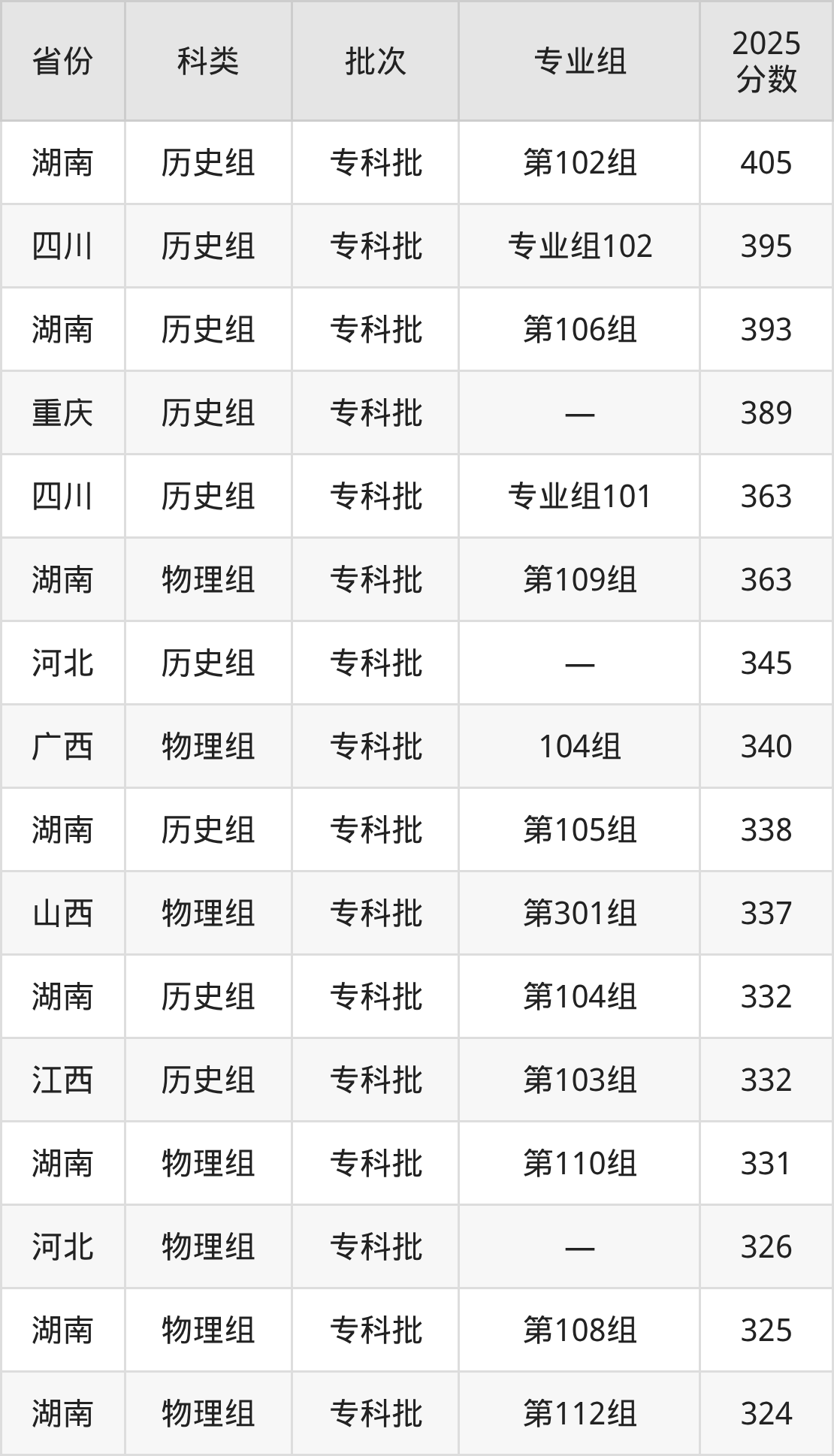 而湖南地区历史组考生的分数门槛最高,2025年黔南民族幼儿师范高等专科学校第102组在湖南招生最低分为405分,考生至少要超专科线205分才有可能被录取。