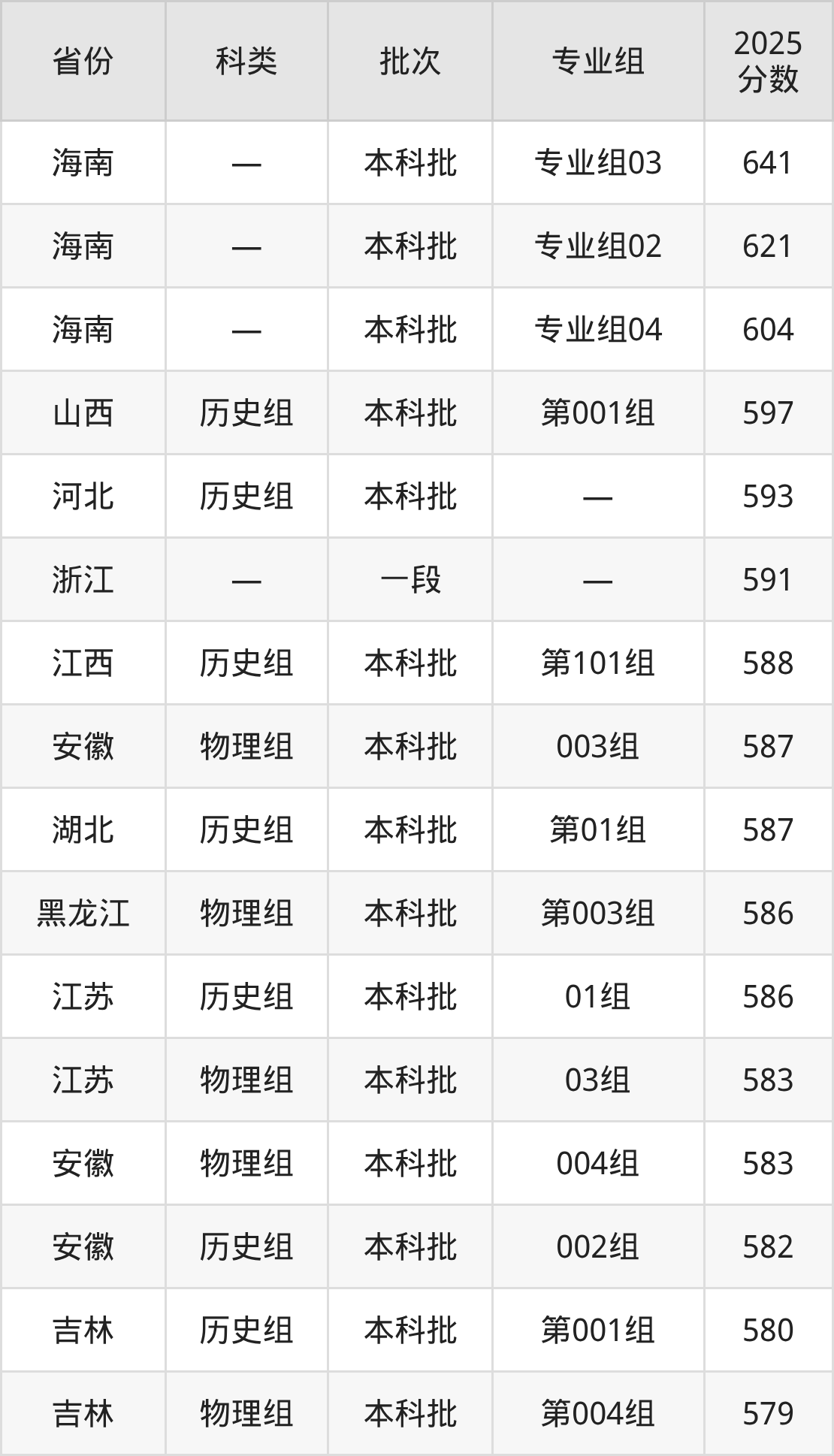 而海南地区考生的分数门槛最高,2025年浙江工商大学专业组03在海南招生最低分为641分,考生至少要超本科线161分才有可能被录取。