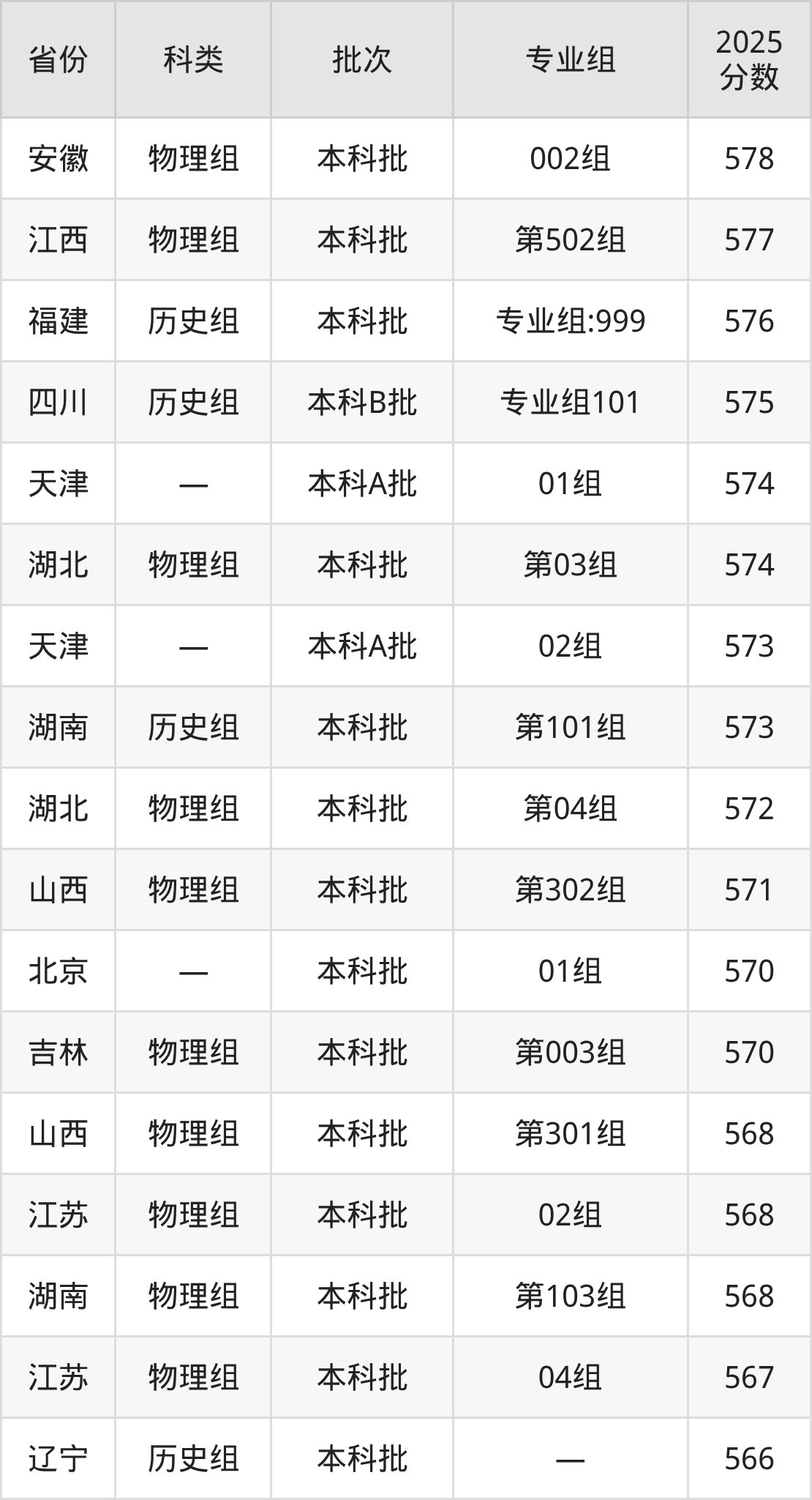 下面是浙江工商大学2025年在全国各省的录取分数线一览表,供参考: