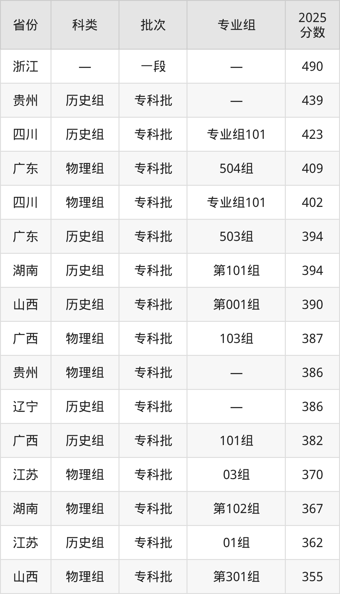 而浙江地区考生的分数门槛最高,2025年上海工商职业技术学院在浙江招生最低分为490分,考生至少要超一段线0分才有可能被录取。
