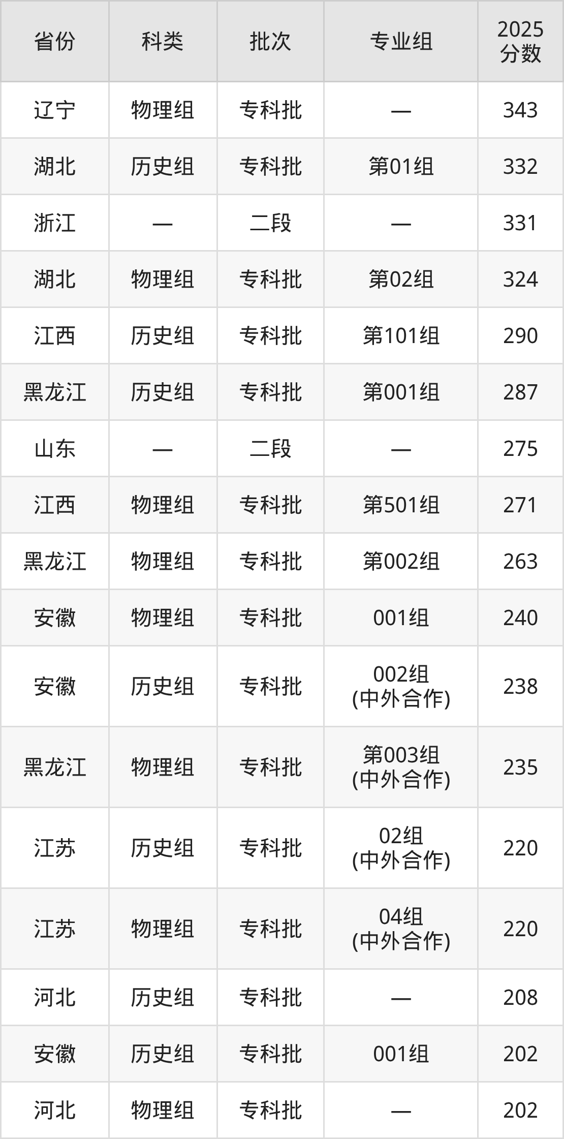 下面是上海工商职业技术学院2025年在全国各省的录取分数线一览表,供参考: