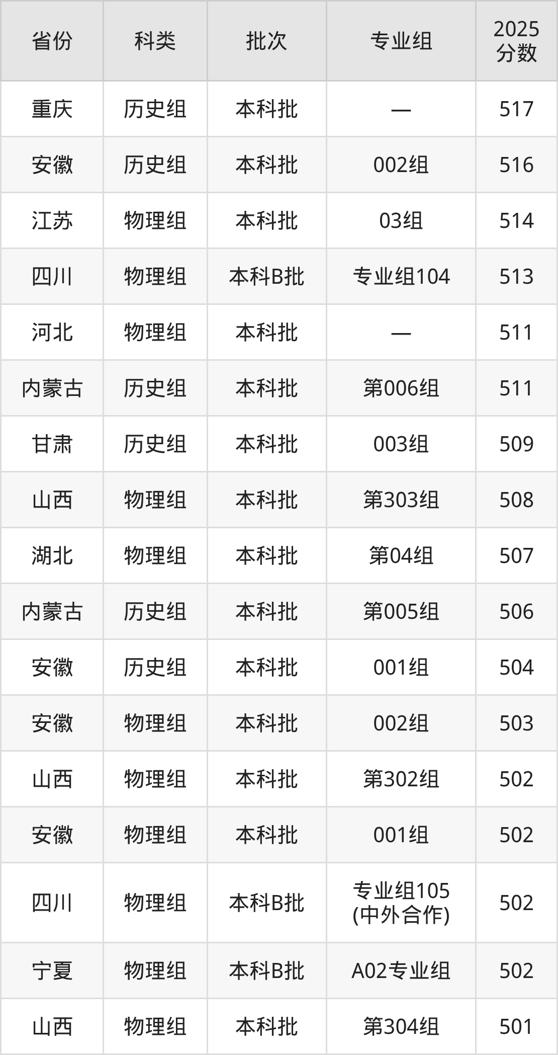 下面是西安医学院2025年在全国各省的录取分数线一览表,供参考: