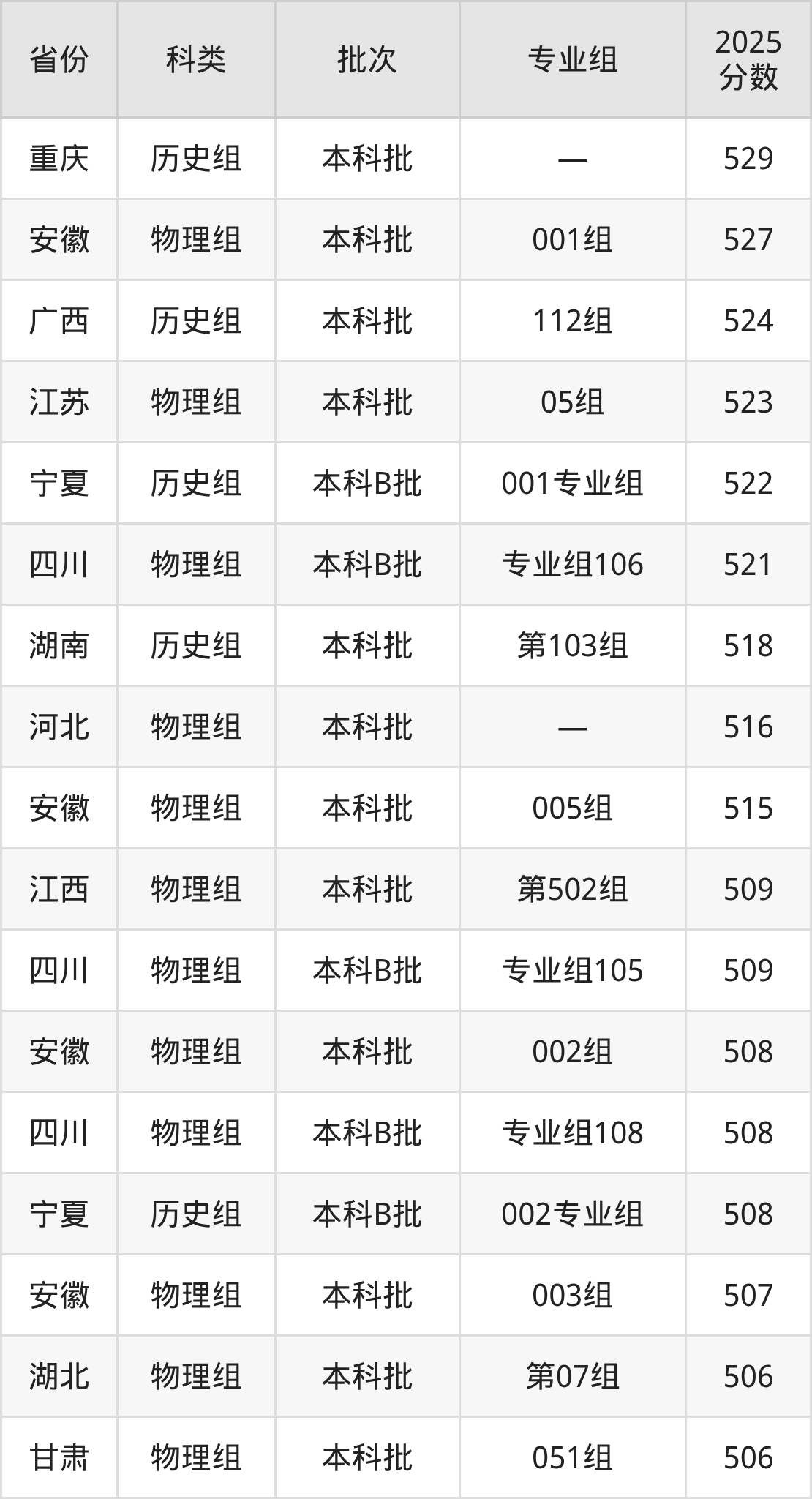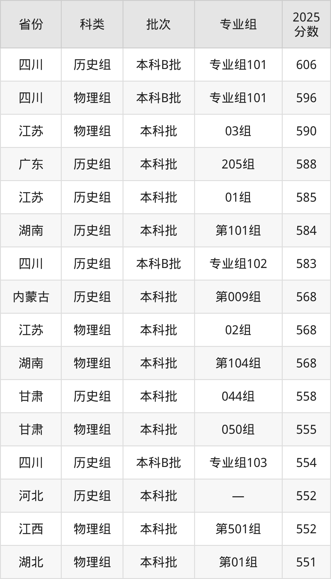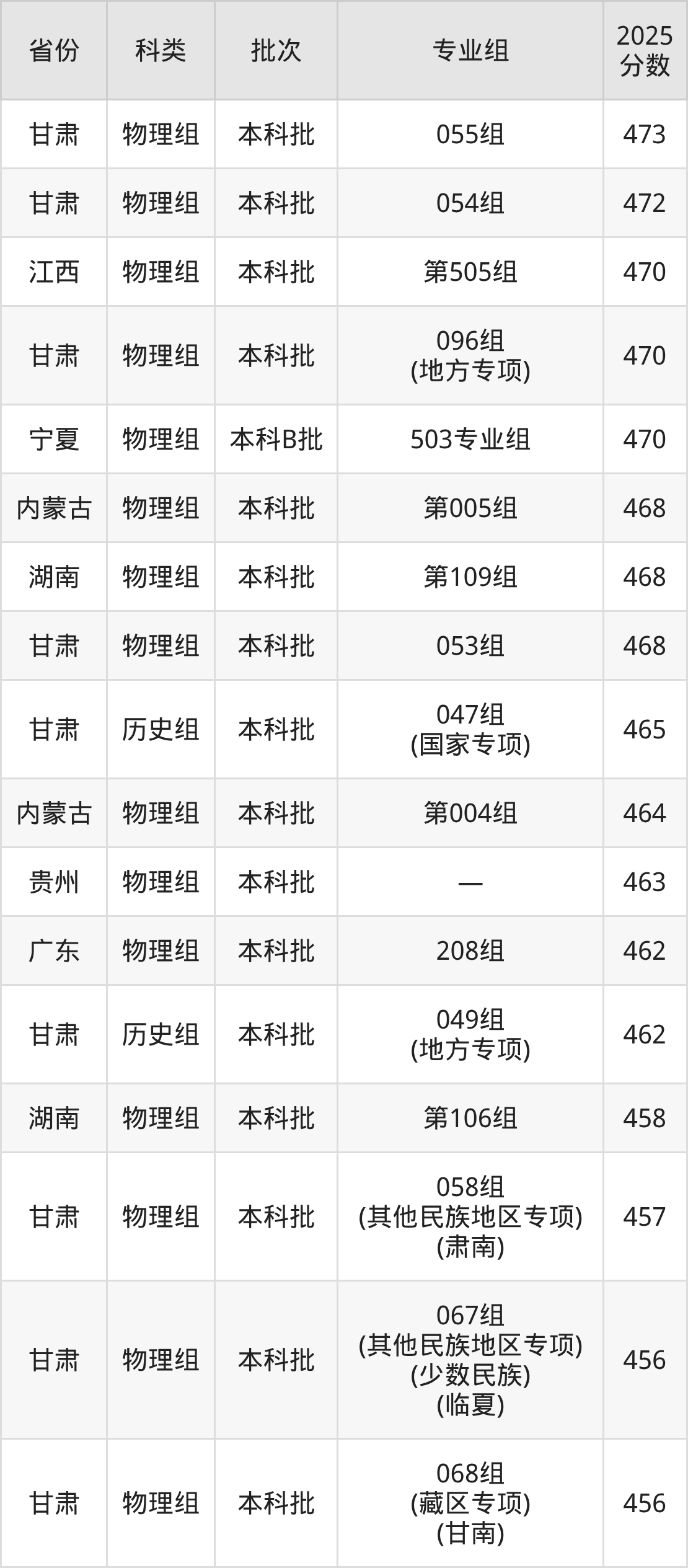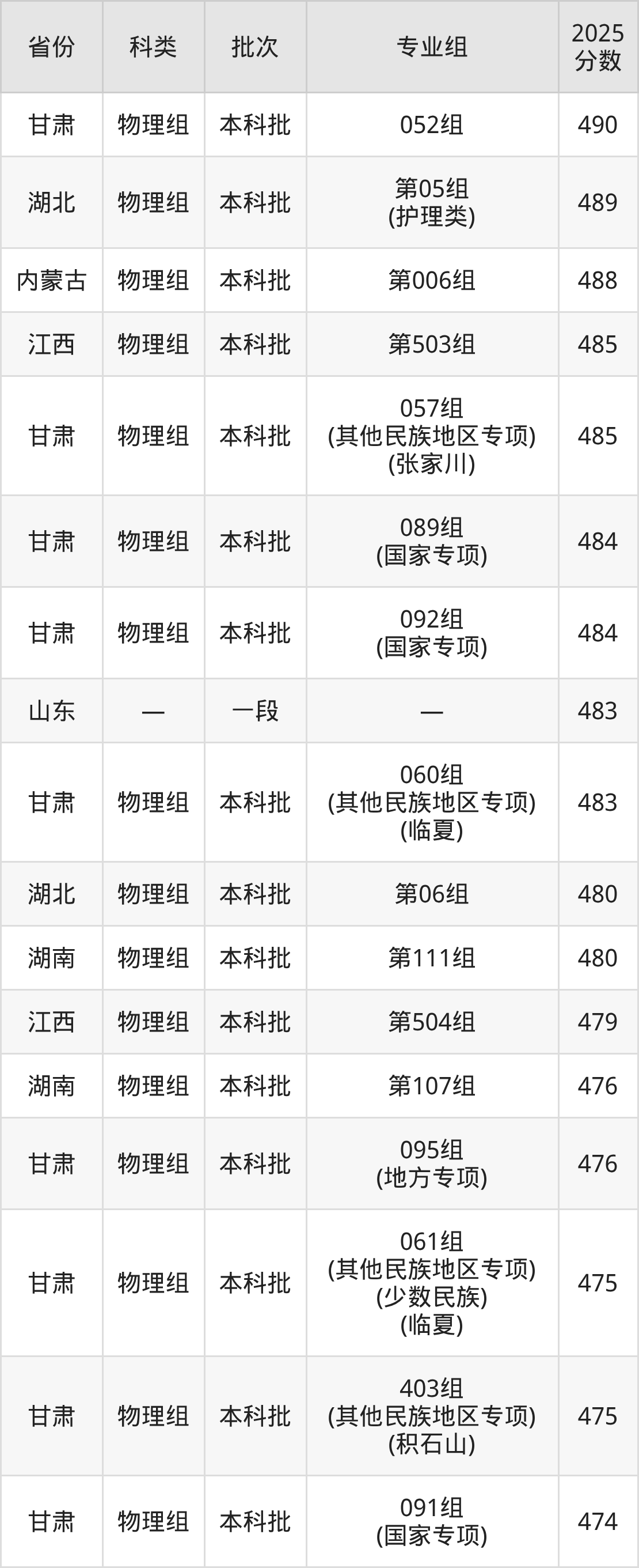 下面是甘肃中医药大学2025年在全国各省的录取分数线一览表,供参考: